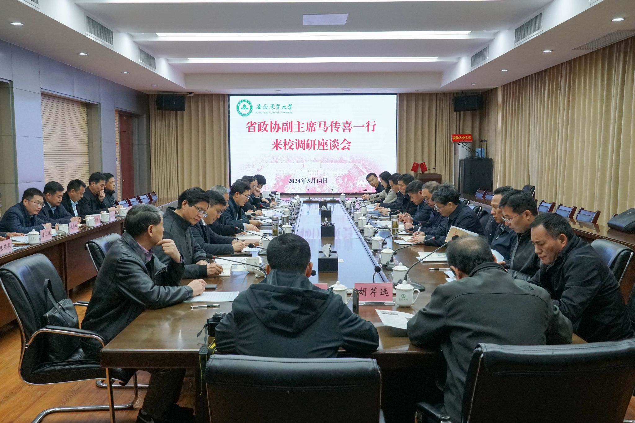 张庆亮对省政协和省农业农村厅长期以来对学校的关心支持表示感谢,介绍了学校基本情况以及服务乡村振兴的主要做法与成效。他表示,全校上下正深入学习贯彻全国两会精神,认真落实省委“办大办好办强安徽农大”的指示要求,坚持“改革开放创新”办学理念,推动关键核心办学指标争先进位,努力在服务农业强国强省中展现更大作为、作出更大贡献。