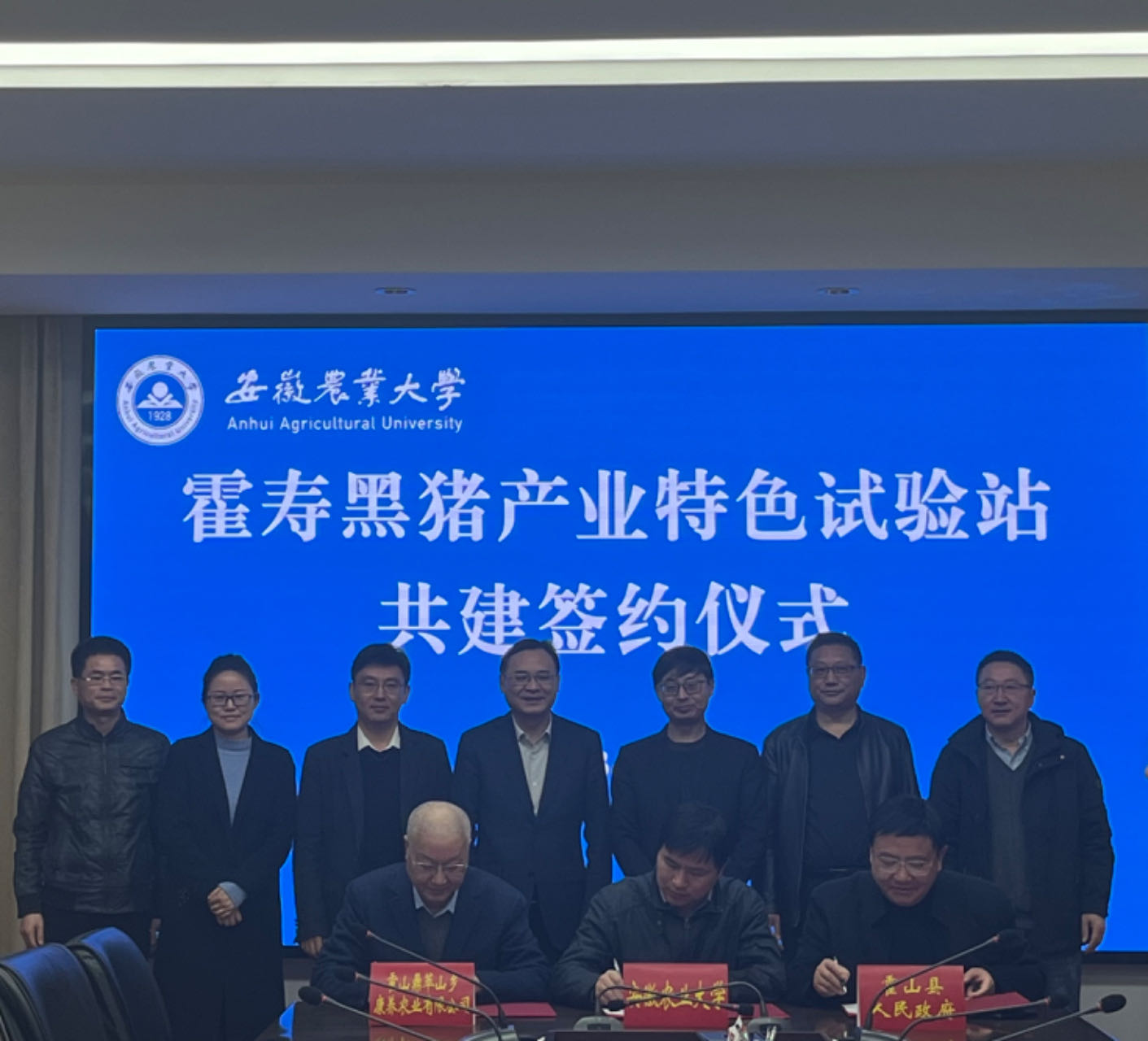 会后,安徽农业大学、霍山县人民政府及霍山鼎萃山乡康养农业有限公司三方签订了共建“霍寿黑猪产业特色试验站”协议。(文图/胡翔 编辑/王润 预审/谈应权 审核/夏晓昀)