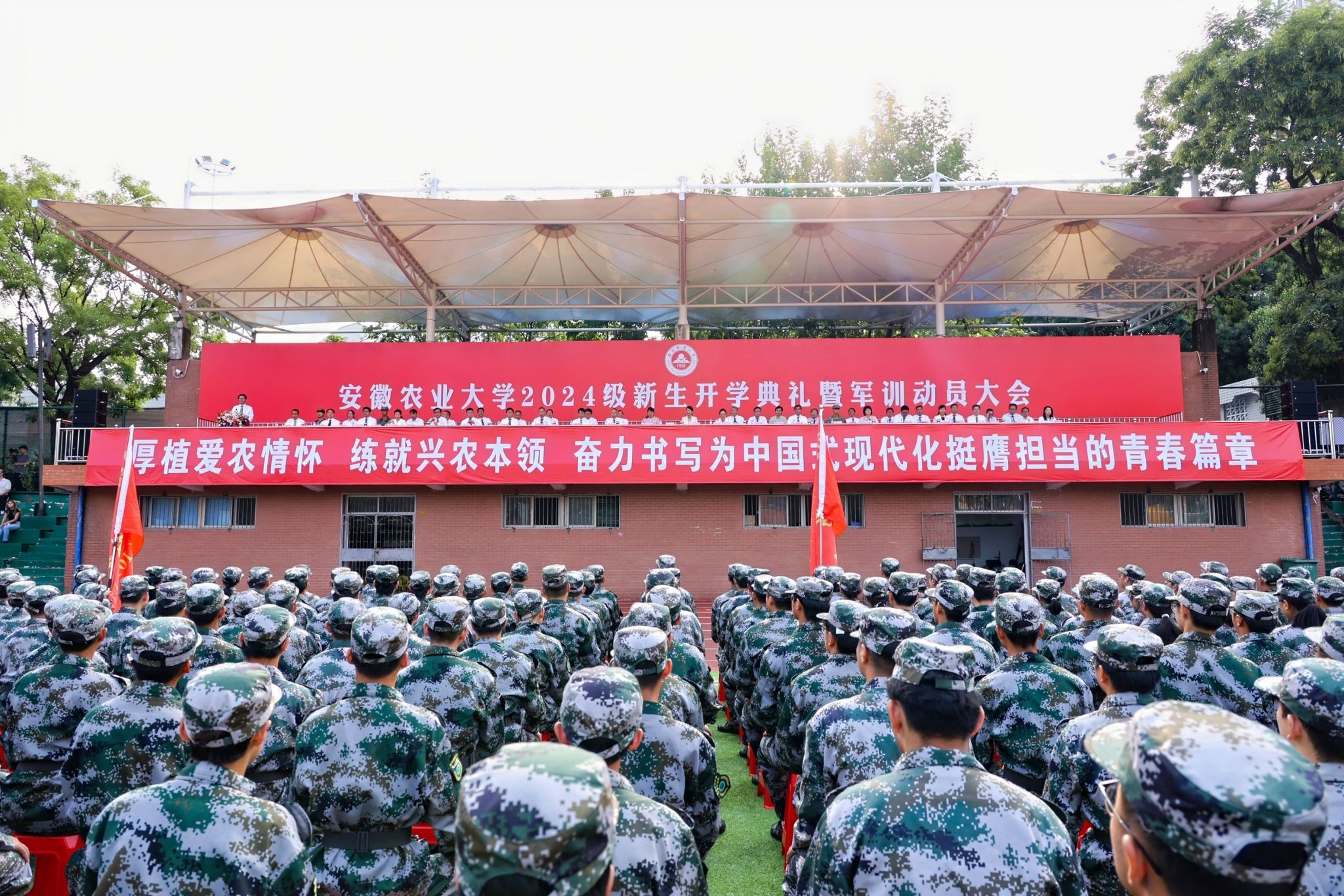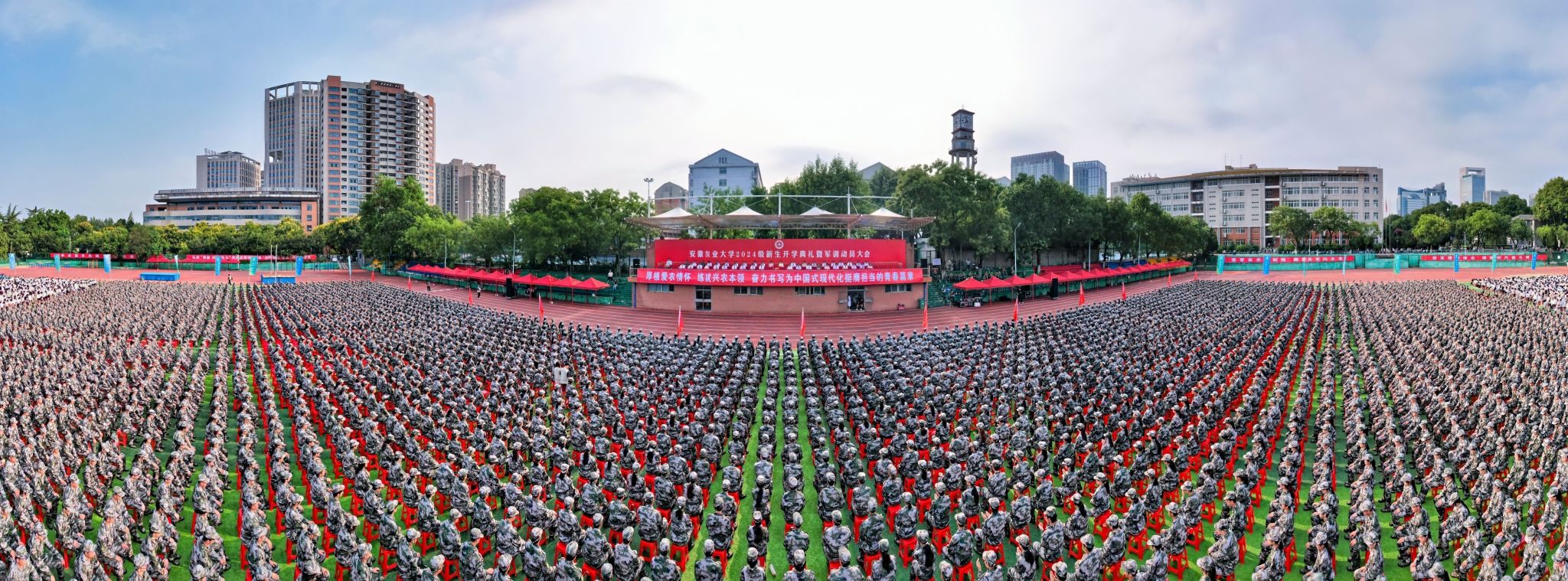 校党委书记张庆亮代表学校向新生的到来表示衷心的祝贺和热烈的欢迎,并以《脚踏实地向未来》为题,为8006名新生上了精彩的“开学第一课”。他围绕“为什么来安农”“毕业后干什么”“在安农要做什么”三个问题,通过100年、40载、20岁这三个时间轴,讲述了安农近百年历史和“大别山道路”40年的传承创新,阐释了“脚踏实地”的安农校训内涵,勉励新生脚踏实地做人,在厚德修身中成大我;脚踏实地做事,在奋斗拼搏中立大志;脚踏实地求学,在博学笃行中成大才,希望大家在“博学 敏行 善言”的优良学风浸润中提升本领、开拓视野,在追求卓越的道路上砥砺前行、不负韶华,努力成长为全球视野、家国情怀、德才兼备、人格完善的“强农先锋、社会英才”。