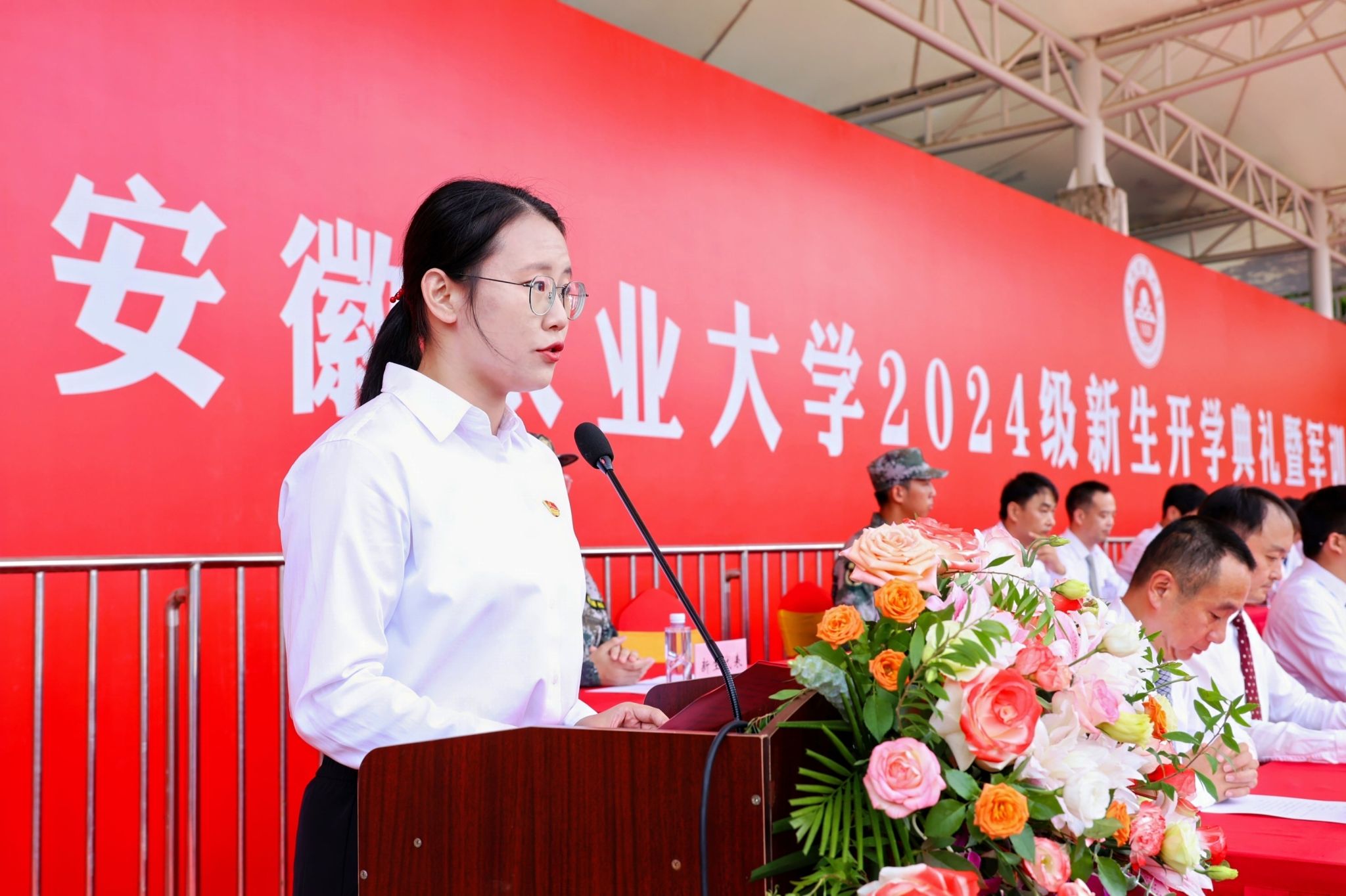 “青春是用来立志的,青春是用来历练的,青春是用来沉淀的。” 校友代表、动物科技学院2004级水产养殖专业王效龙在发言中回顾了自己的成长经历和在安农求学的历程,表达了对母校的感激之情,寄语学弟学妹要志存高远、修身立德、勤学苦练,让青春在想干事、能干事、干成事的不懈奋斗中绽放出绚丽之花。