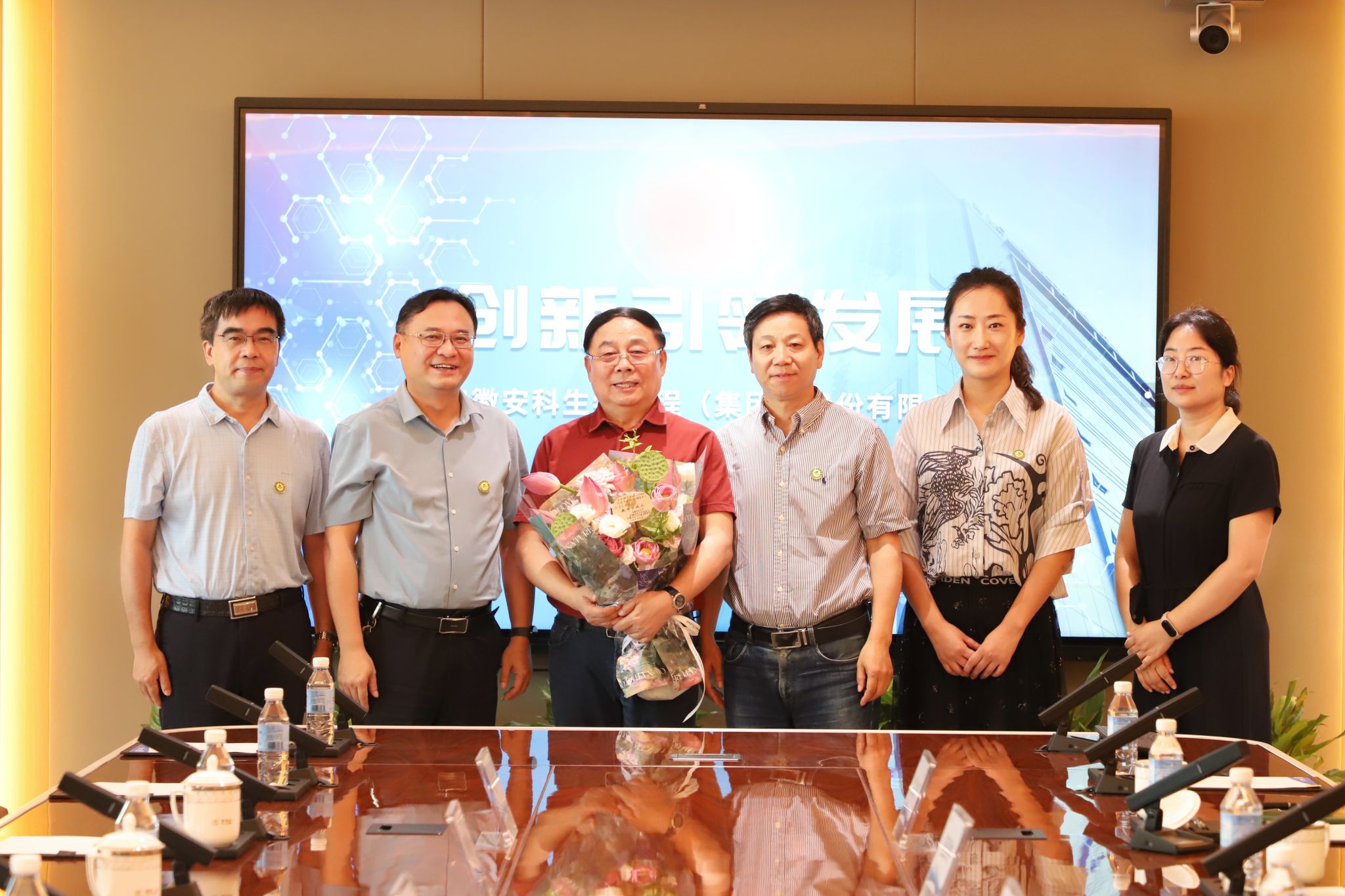 本网讯 在第40个教师节来临之际,9月10日上午,校领导操海群、蔡德军,校教育基金会理事长裴树东一行前往安徽安科生物工程(集团)股份有限公司看望慰问校友,并开展“感念遇恩师 礼颂引路人”主题座谈会。1977级植物保护专业、安徽安科生物工程(集团)股份有限公司董事长宋礼华,1981级植物保护专业、安科生物首席投资顾问宋杜吾参加了座谈交流。