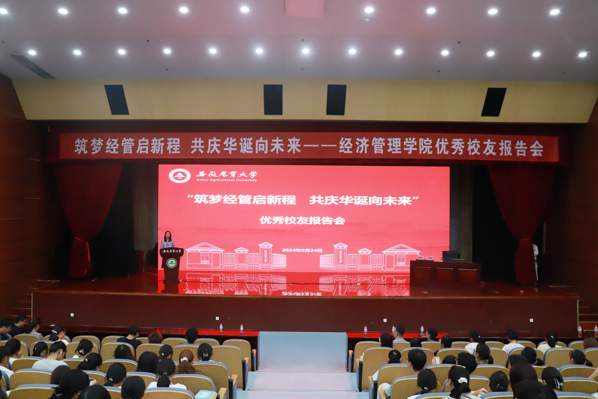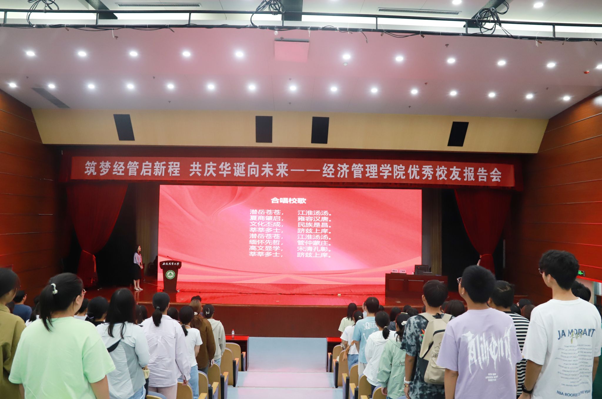 报告会后,全体师生集体合唱安徽农业大学校歌,共同表达对学校的美好祝福。(文/吴慧丹 图/胡正飞 编辑/胡正飞 预审/周涛 审核/武晓蓓 刘海涛)