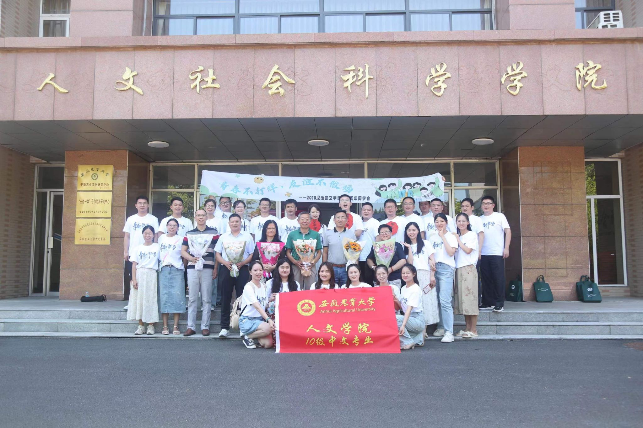 本网讯 青春不打烊,友谊不散场。2010级汉语言文学专业毕业十年同学会于2024年7月21日于人文社会科学学院举行,2010级汉语言文学专业同学与人文社会科学学院院长方国武、副院长滕瀚、专业辅导员管志权及中文系老师欢聚一堂。