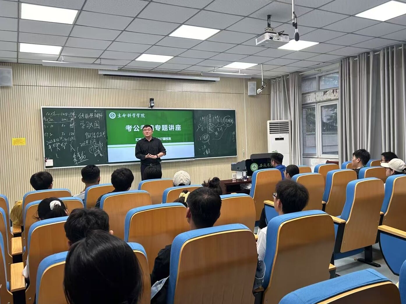 本网讯 2025年国家公考报名公告已于10月14日正式公布,为帮助学生更好地把握备考方向,10月17日下午,生命科学学院在十教216会议室举办公考指导专题讲座,本次讲座邀请了2017届应用生物科学专业校友、公考授课资深讲师朱学龙为同学们分享公职类就业备考经验。