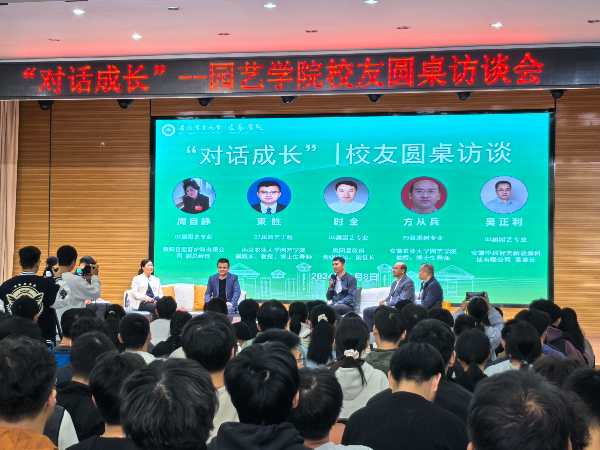 在机遇与挑战并存的年代,几位校友精准定位,敢想敢为,或继续求学、投身科研,或“身心”向下、扎根基层,或从零开始、自主创业,如今在商界、学界、政界颇有建树,在各行各业闪闪发光。这是园艺学科多元化发展的具象化,彰显了培养全面发展人才的教育理念,为同学们提供了更多就业方向,展现了园艺学子未来发展的无限可能性。02届园艺专业校友时全,如今是凤阳县政府党组成员、副县长,在谈及自己基层工作经历时感慨到,“园艺产业作为乡村振兴的有力支撑与闪耀亮点,不仅具有广阔的市场前景和发展空间,更是在政策环境的积极推动下展现出强大的发展生机。”时全勉励同学们积极服务群众所需,扎根基层,努力成为与现代农业相匹配的复合应用型人才。“学好园艺,是发展智慧园艺的基础,园艺和计算机等其他专业的结合会提供更多的就业可能性。”结合自身的创业经历,03届园艺专业校友、安徽中科智充新能源科技有限公司董事长吴正利说。“只有学会变通,才能适应这个不断变化的世界”,同在商界发展的周自静补充道。他们表示,基础园艺知识是他们多元化发展职业的基石。同学们充分认识到,无论是政界、商界还是学界,园艺学子都有广阔的发展空间,最重要的是打牢园艺基础、找准发展方向、敢想敢为、提前谋划、全力以赴、才能“卷”出未来。