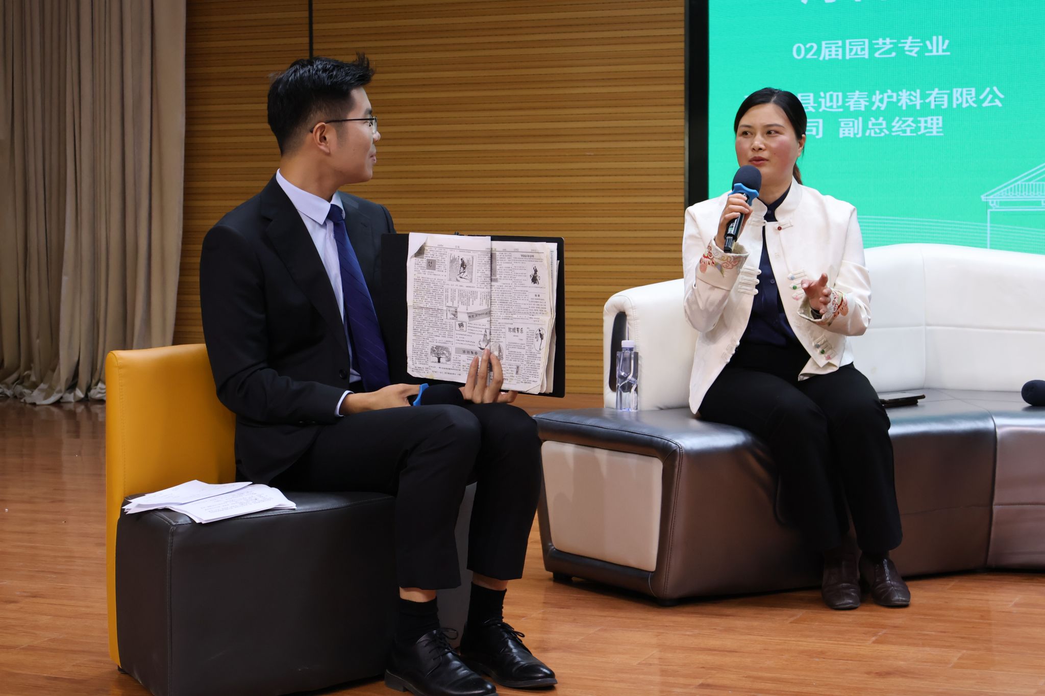 功成不忘来时路,心中永怀母校情。07届园艺工程专业校友、南京农业大学园艺学院副院长、教授、博士生导师束胜在谈及大学期间所学所得时说,“大学学到的知识是我后期科研的基础,这让我在学术的路上走得更扎实。”他回忆当初求学时的情景,感叹在充满机遇与挑战的时代选择了园艺,学到的知识和方法对之后几十年的工作和生活都产生了巨大的影响。大学里收获的不仅是知识,还有纯粹的同窗情谊,“我们大学同学一直保持着联系,哪怕是二十多年后的现在,我们彼此之间都是随叫随到。”“我当初没有想到会有今天的发展成就,这要归功于当初我的老师给予我的点拨,感谢他们在迷茫懵懂的时期给了明确的方向指引,让我报考了大学生村官。”现场同学感慨万分,感动于园艺人互帮互助、互相成就的校友情谊,也更坚定了园艺学习的信心和决心。