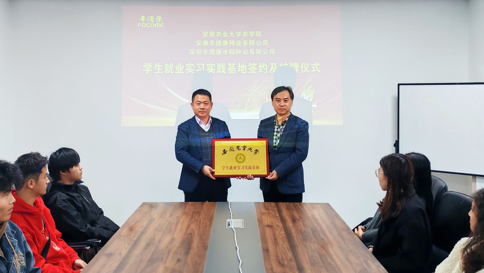 会后,院企双方就实习就业、人才培养、产教融合等事宜进行深入交流,并举行了“就业实习实践基地”授牌仪式。(文图/钱田玉 编辑/周毅 预审/范宇 审核/冯峰)