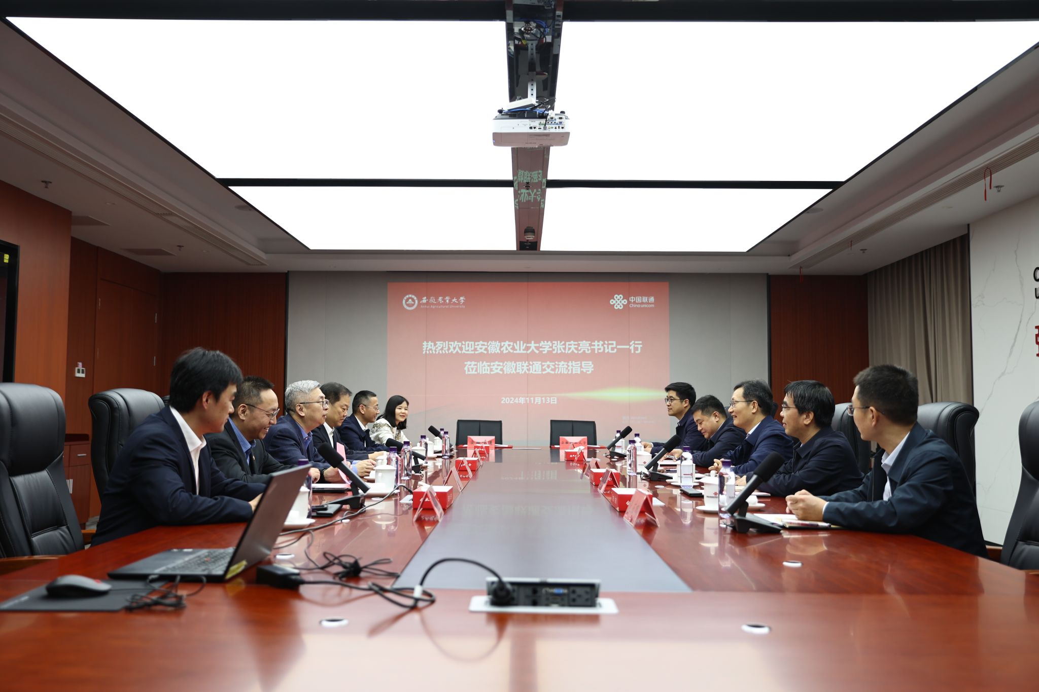 本网讯 11月13日,校党委书记张庆亮,校党委常委、副校长蔡德军一行赴中国联通安徽省分公司调研交流。中国联通安徽省分公司党委书记、总经理韩冰,党委委员、副总经理刘鸿涛热情接待了张庆亮一行。蔡德军和刘鸿涛分别代表双方签署了校企战略合作协议。