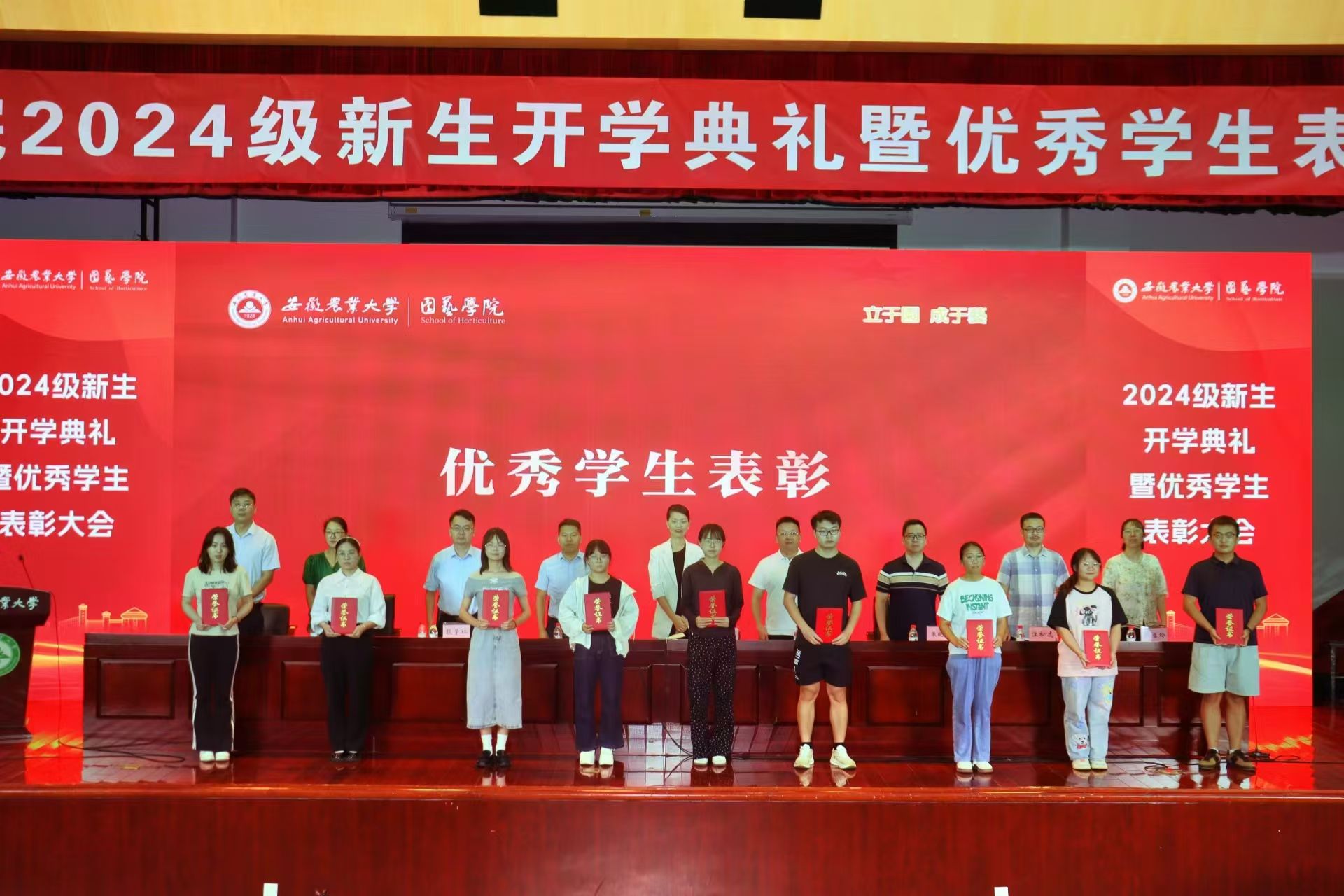 副院长朱晓彪、殷学仁分别介绍研究生和本科生人才培养情况。教师代表陈峰寄语新生享受大学生活,树立远大理想,团结友爱、尊敬老师、乐于学习、持之以恒、练就本领,成为适应社会发展的复合型应用型人才。园艺学院1998届校友安徽国豪种业有限公司董事长韩仁长向新生分享求学与创业之路,激励同学们把握光阴、争先进位、奋发有为。