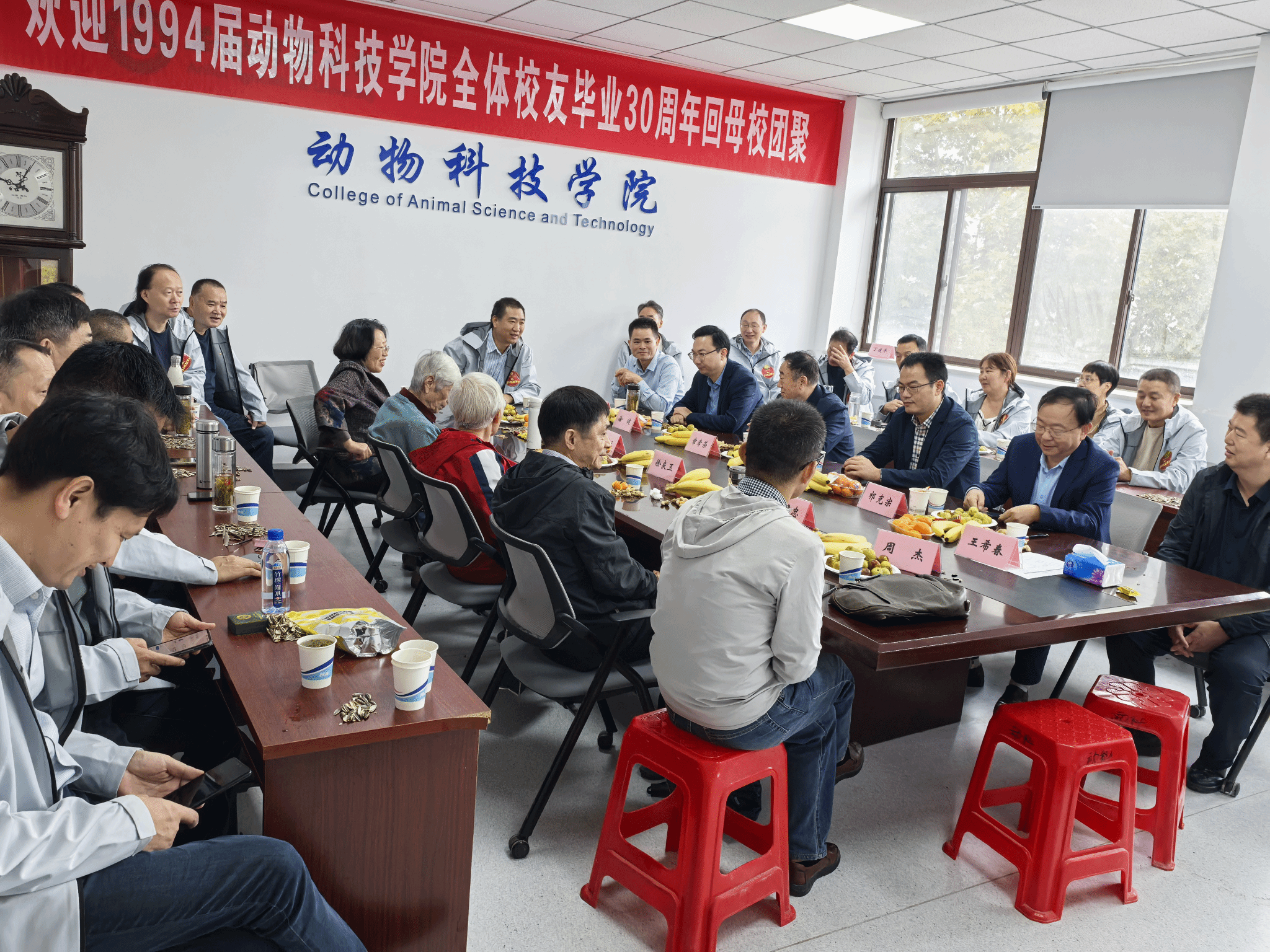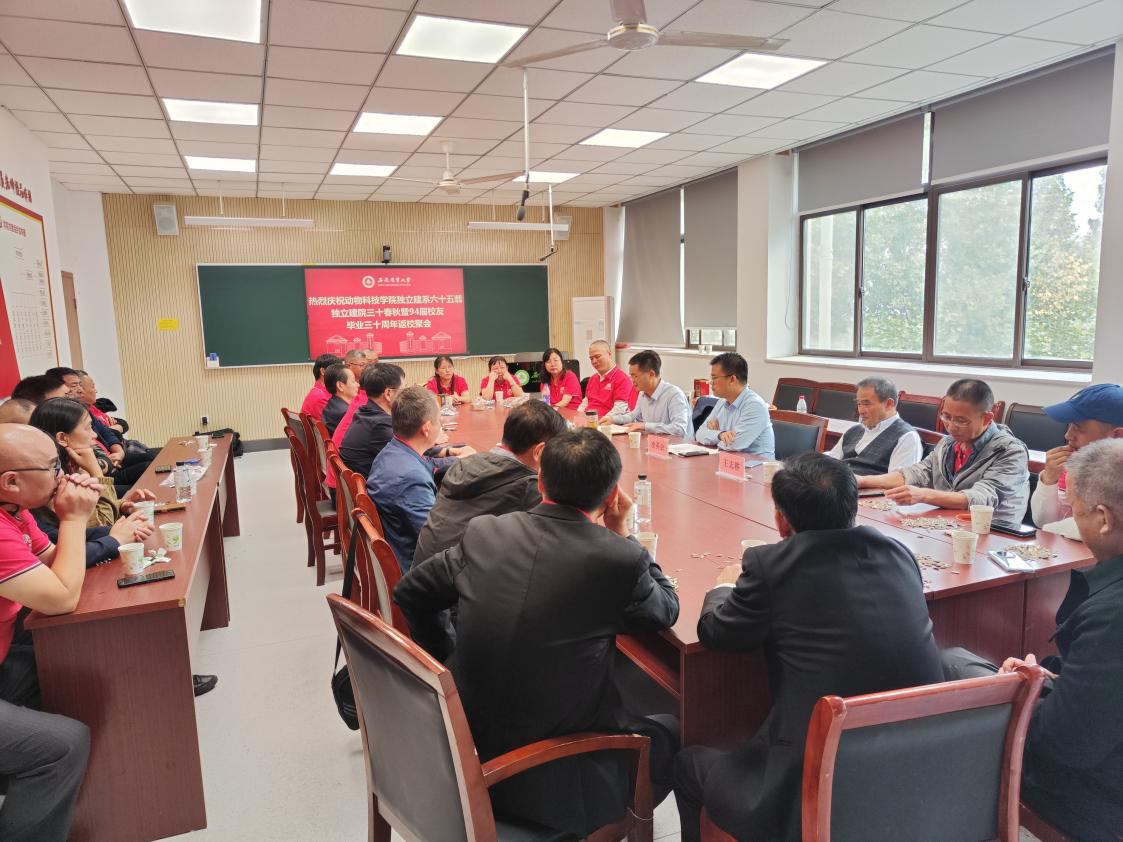 本网讯 金秋送爽,丹桂飘香。10月19日,动物科技学院畜牧、兽医、淡水养殖、食品卫生检验专业87位校友返校聚会,大家欢聚一堂,畅叙师生情,共话同窗谊。学院领导张子军、章巍、涂健、凌英会、王希春及部分教师代表应邀出席座谈会。