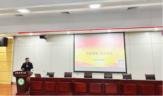 贾长敬在报告中结合自身成长经历,分享了职业生涯中的成功与挑战。他强调,现代社会中,只有坚守诚信、稳步前行,才能实现长远发展。通过具体案例,贾先生阐述了“守正笃实”和“久久为功”的重要性,指出职业成功不仅依赖于专业技能,更需要坚定的责任心与对事业的执着。他鼓励同学们在学习过程中注重实践,锻炼综合素质,树立终身学习的理念,持续提升自我,才能在职场中立足并实现个人价值。
