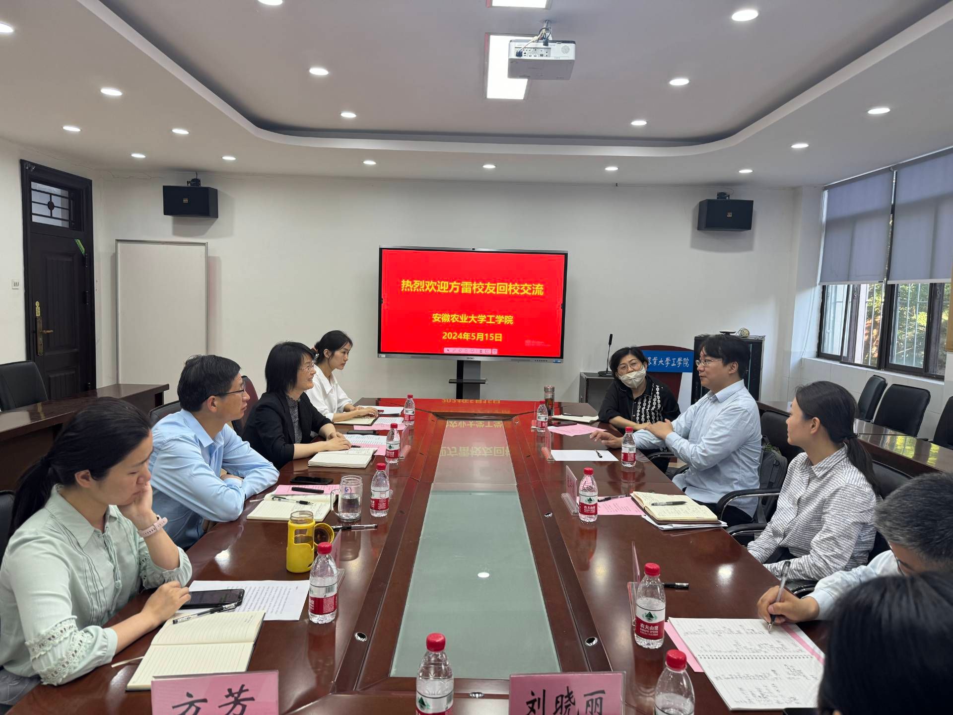 会前,朱德泉带领方雷教授参观学院文化墙,介绍学院基本建设情况。座谈会上,吴冬梅对方雷教授的到来表示热烈欢迎,朱德泉介绍工学院基本情况以及近年来学院在学科建设、科学研究、人才培养等方面取得的成绩,方雷教授介绍了个人工作情况和研究内容,回顾了自己在安农的成长历程和学习经历,并为母校的发展建言献策。