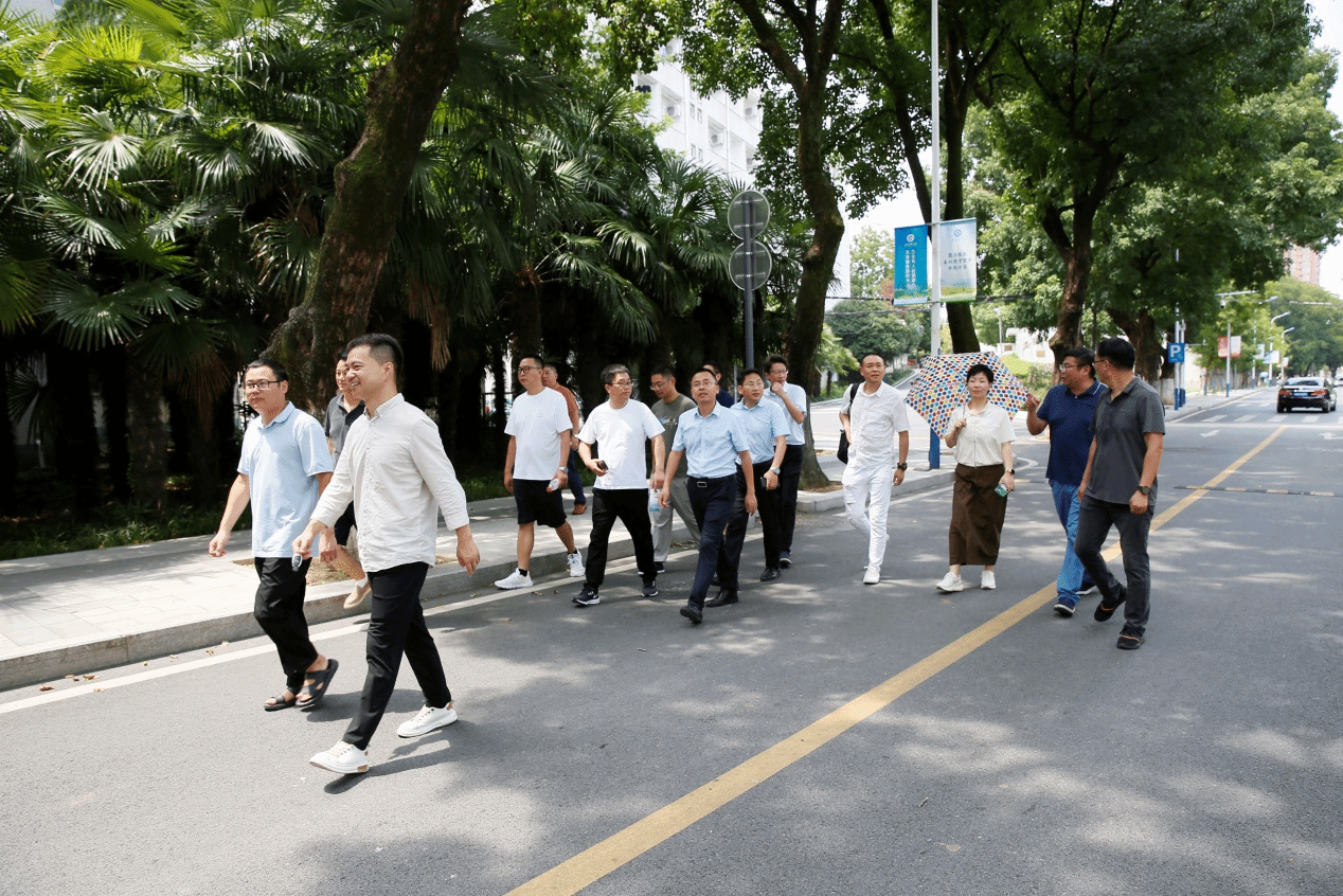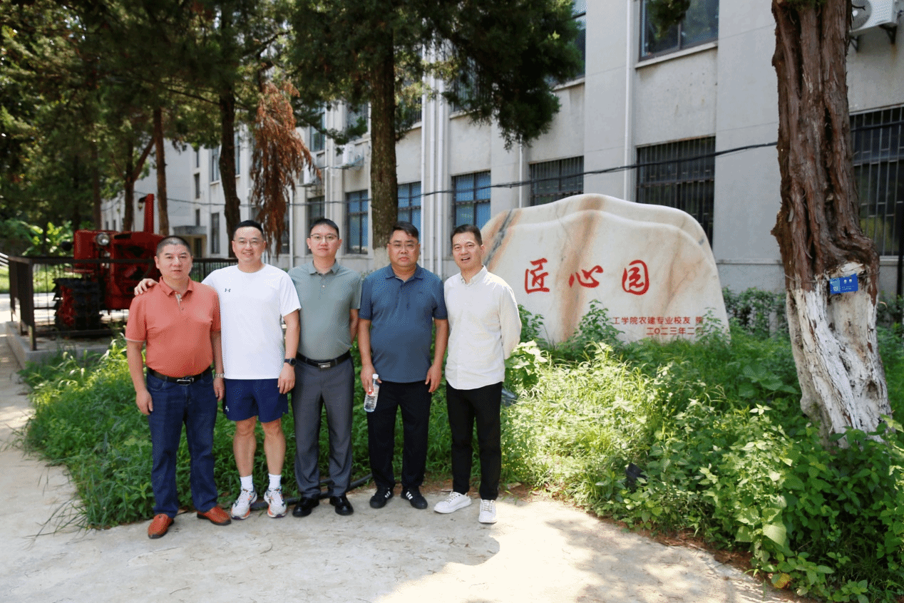 校友们在“匠心园”前合影留念,先后参观了教学楼、图书馆、运动场、宿舍等地。
