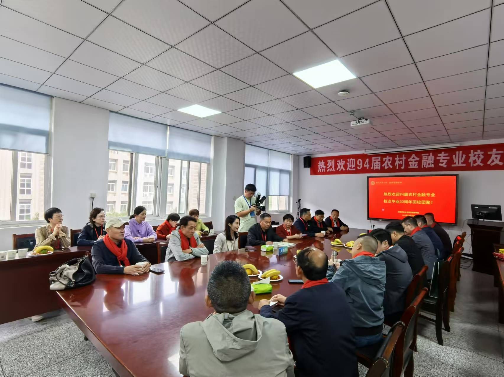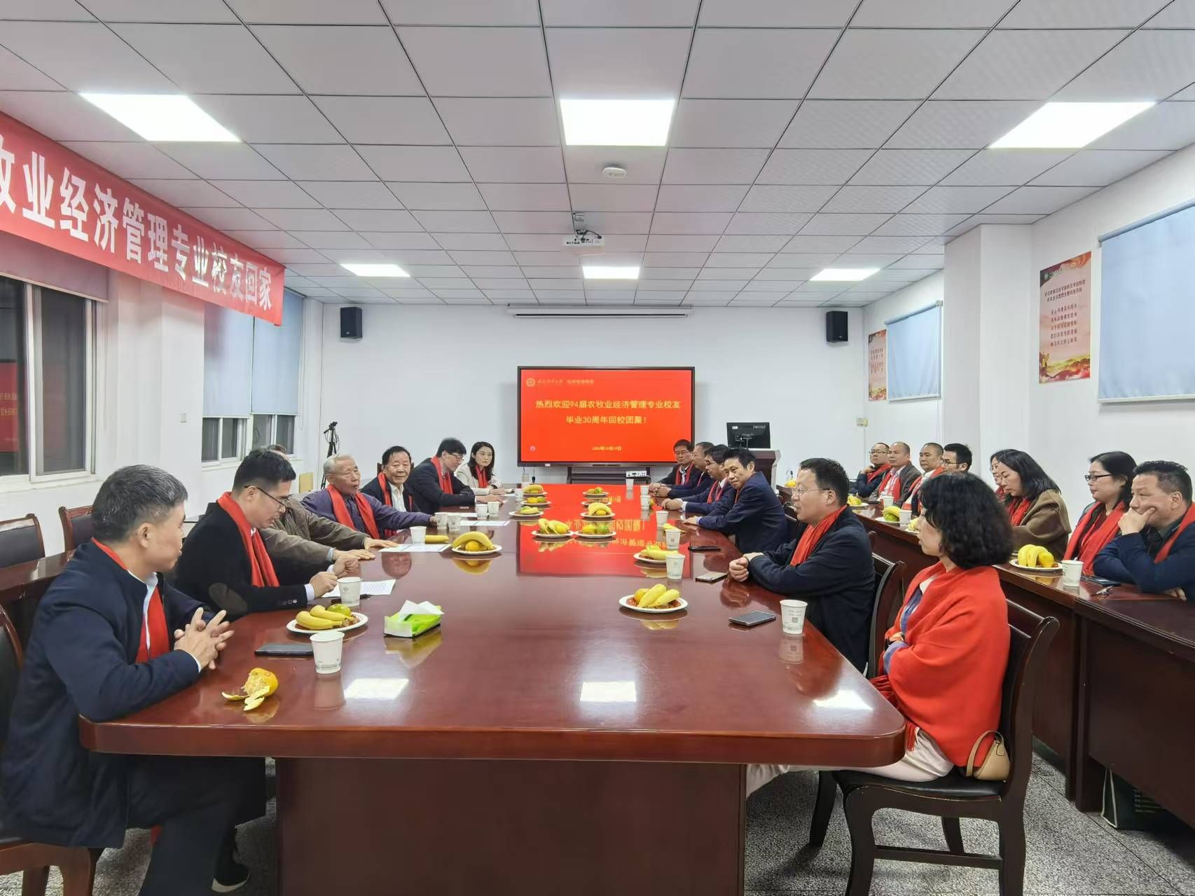 本网讯 情系母校三十载,赓续辉煌铸新篇。10月19日,经济管理学院1994届农牧业经济管理、农村金融专业校友相聚安农,举办毕业三十周年返校活动。校党委常委、副校长、农牧业经济管理专业校友蔡德军,校友会副会长、时任农牧业经济管理专业辅导员韩军,经济管理学院党委书记武晓蓓、院长尹世久,部分退休教师代表等出席活动。