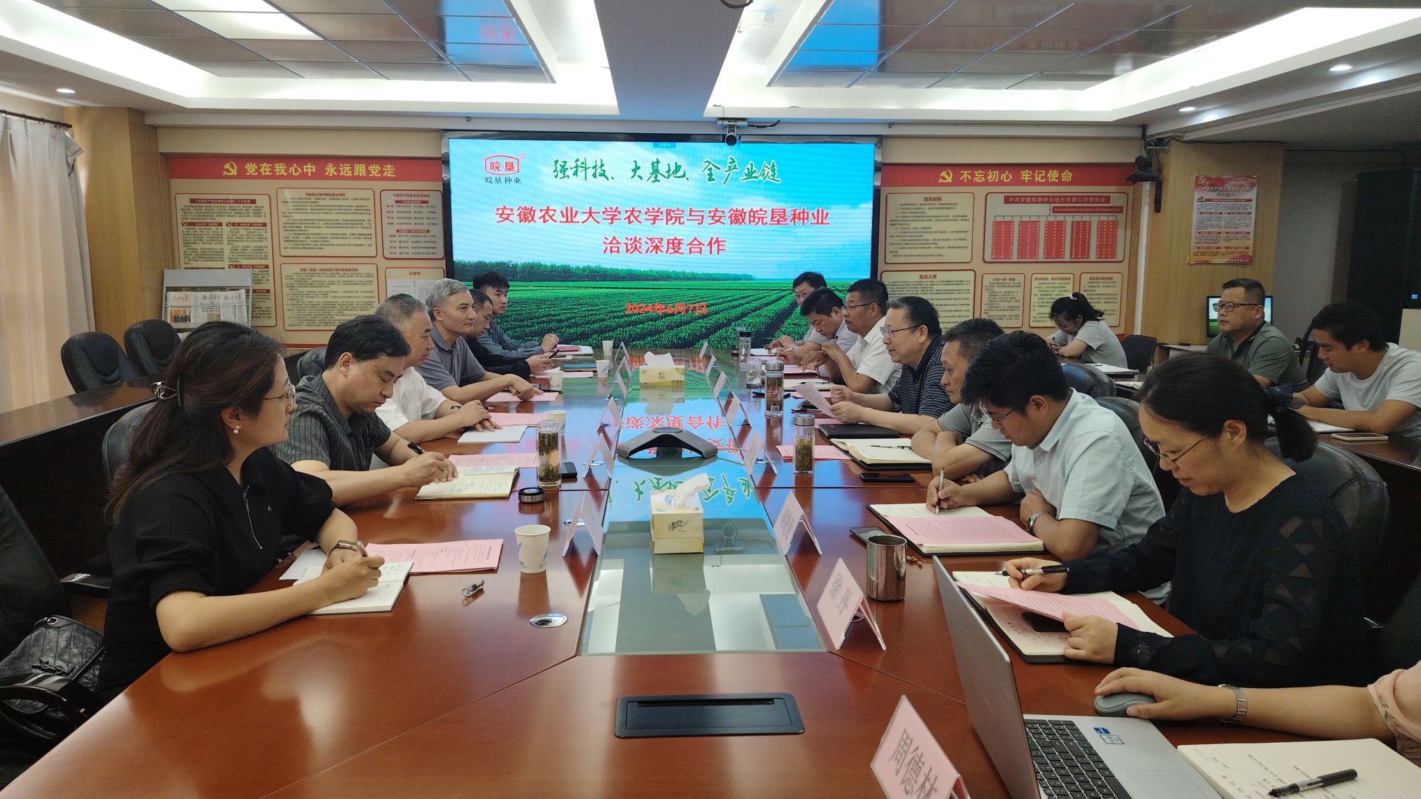 陈文兵对安徽农垦、皖垦种业在紧跟前沿,助力安徽种业高质量发展方面取得的突出成绩表示祝贺。他表示,访企拓岗是贯彻党中央、国务院“稳就业”“保就业”决策部署的重要一环,是促进人才培养与输送的有效衔接。他说,长期以来双方合作基础好、宽度广、交流深,希望未来在技术研发、人才联合培养、科技成果转化、平台共建、学生就业实习实践等方面继续走深走实,共同为打造合肥种业之都,服务安徽高质高效的农业强省作出新的、更大的贡献。