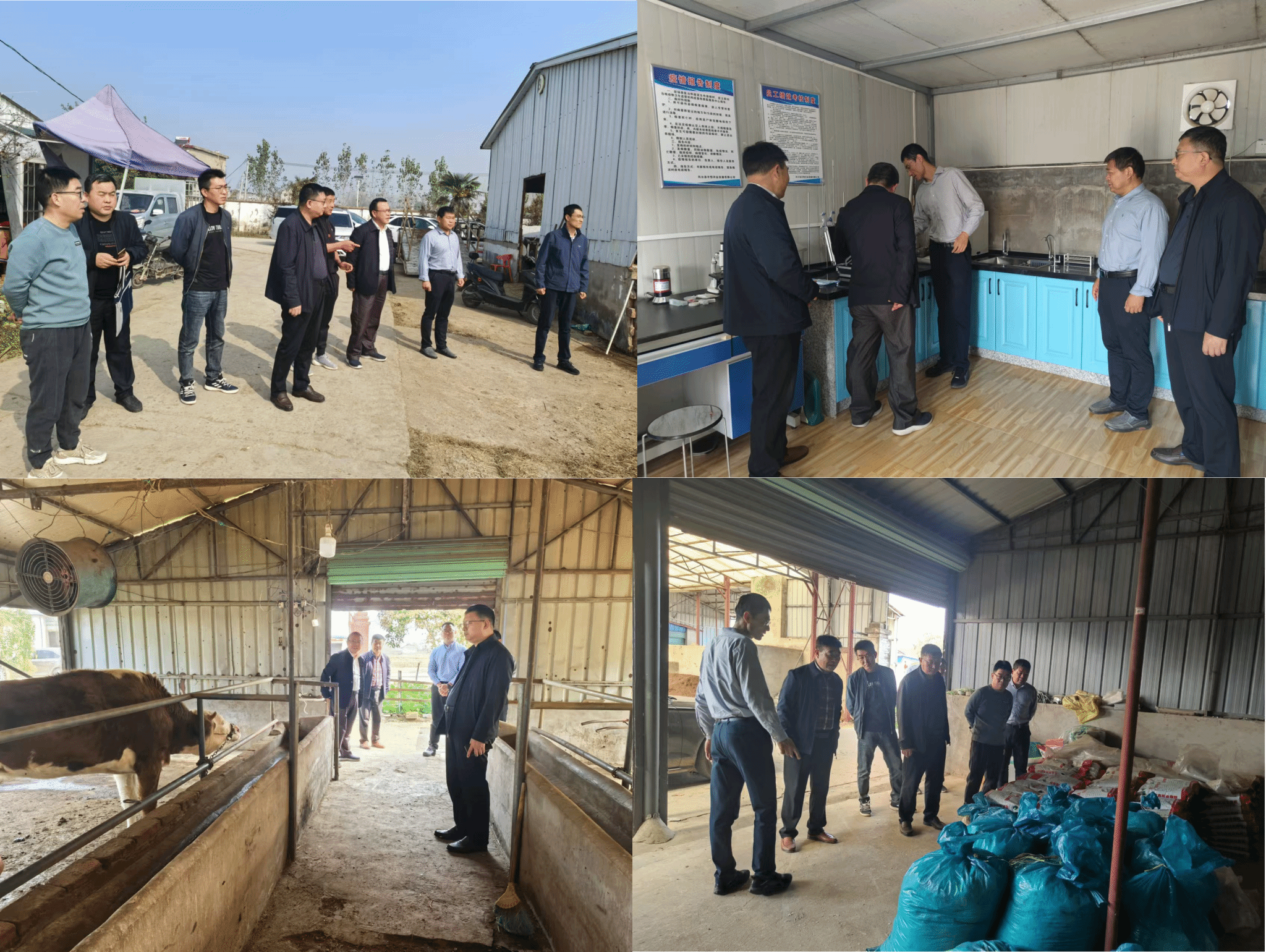 本网讯 根据中共安徽省委组织部“百个专家团队下基层”活动统一部署,10月29日至30日,安徽农业大学组建了以动物科技学院李运生副教授为团长,以肉牛产业研究院院长张运海教授、副院长刘洪瑜副教授、疫病防控创新团队首席专家韩春杨教授、刘亚副教授等为成员的专家团,先后深入淮南市凤台县和大通区开展肉牛产业调研、座谈交流和养殖技术服务。县区党委组织部人才局、农业农村局等相关单位负责同志陪同调研和座谈。我校校友、普莱柯肉牛事业部总监项性龙参与肉牛养殖技术服务指导与交流。