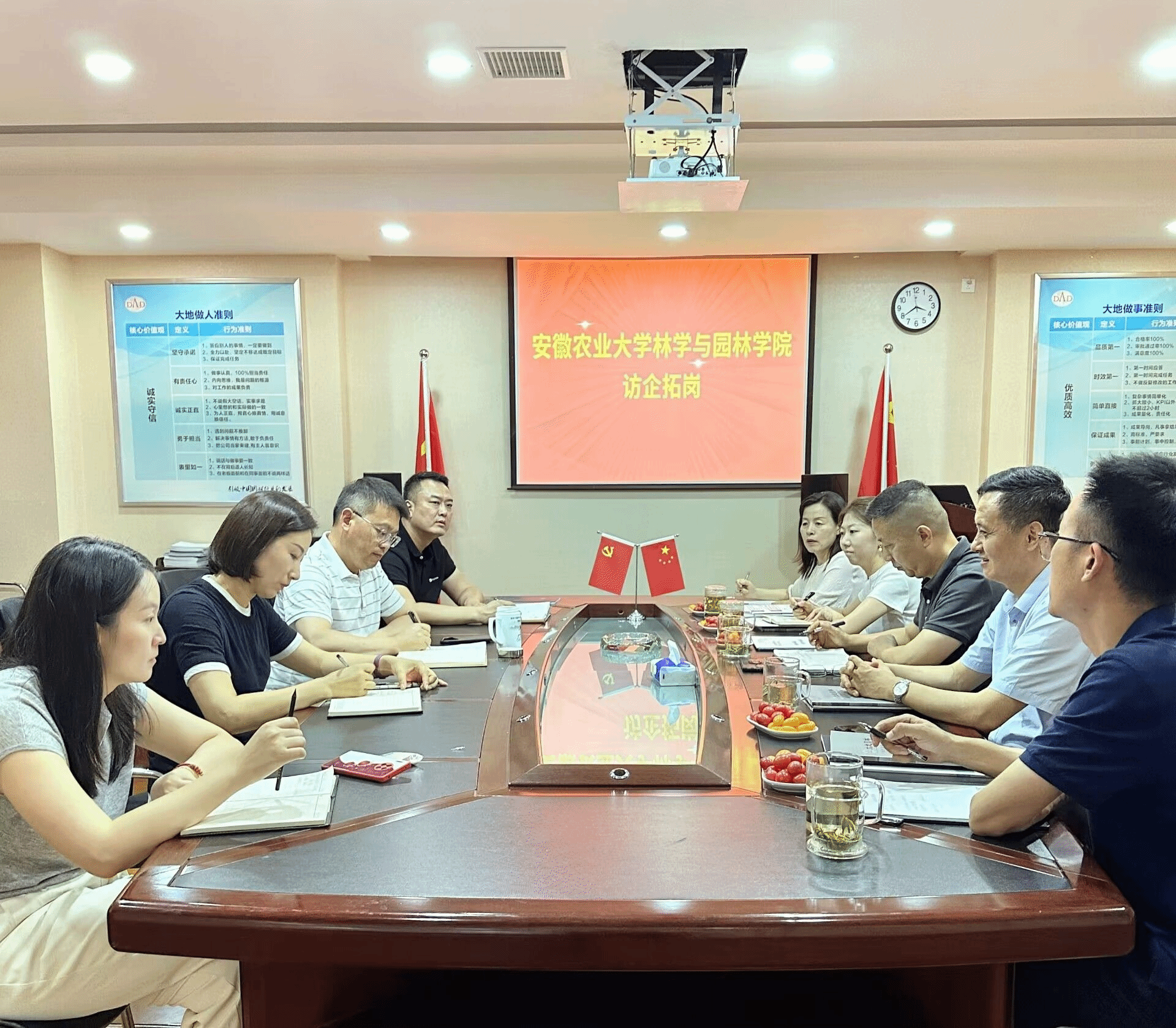 本网讯 7月4日,林学与园林学院副院长陆小彪及风景园林系骨干教师等一行5人先后赴华艺生态园林股份有限公司、安徽大地建设投资控股集团开展访企拓岗促就业专项行动,两家校友企业的领导热情接待了学院一行并举行座谈交流。