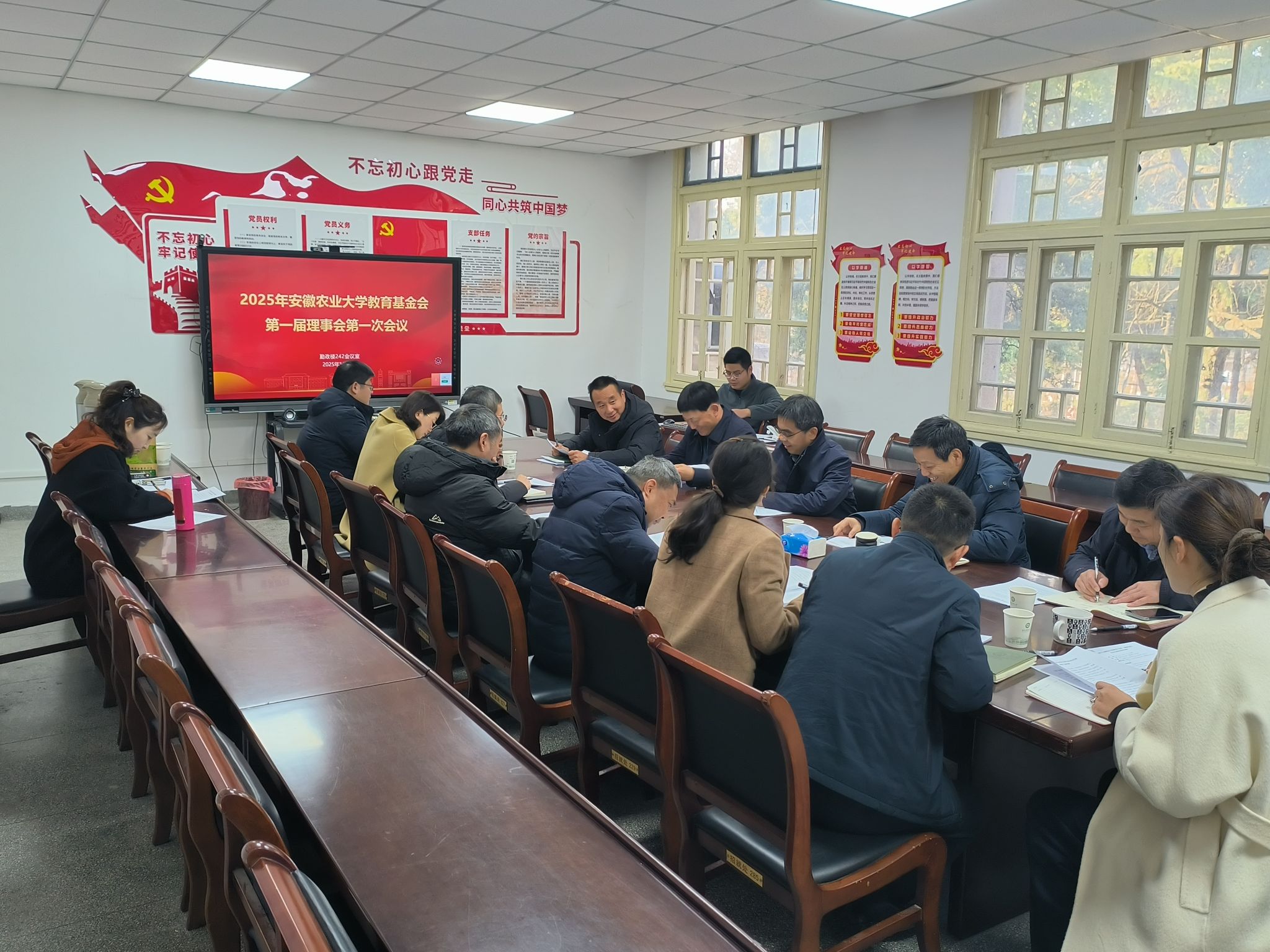 本网讯 1月6日下午,安徽农业大学教育基金会2025年第一届理事会第一次会议在勤政楼第五会议室召开。校党委常委、副校长蔡德军、基金会副理事长、1986届园林绿化专业校友、华艺生态园林股份有限公司董事长胡优华、基金会部分理事、监事参加会议。会议由基金会理事长裴树东主持。