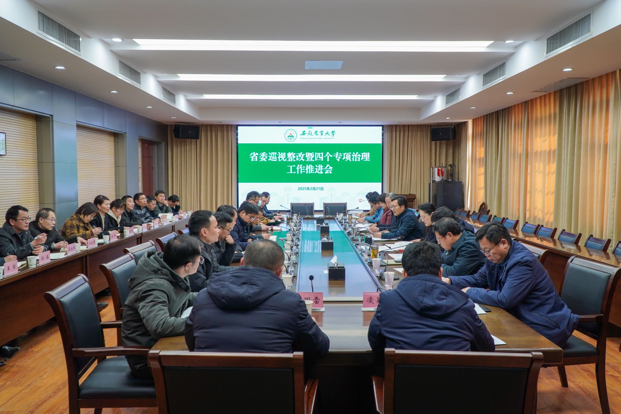 本网讯 2月21日下午,校党委书记、巡视整改工作领导小组组长张庆亮主持召开省委巡视整改工作推进会,全面梳理整改进展、深入查找问题不足、研究深化落实举措。校领导李红以及校巡视整改工作领导小组成员,各整改责任单位主要负责人,各学院党委主要负责人,巡改办、督查组工作人员参加会议。