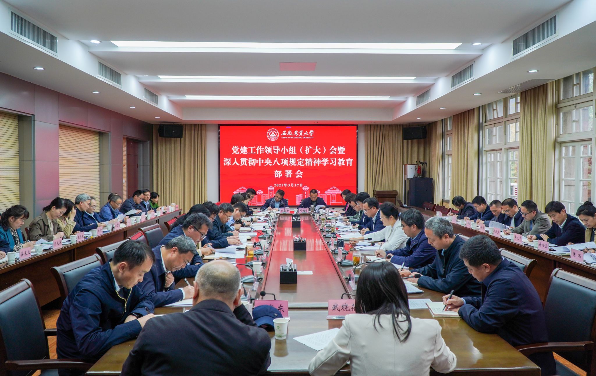 会议学习传达中央、省委党的建设工作领导小组会议和有关通知文件精神,解读我校学习教育《实施方案》。会议指出,要深刻领悟开展深入贯彻中央八项规定精神学习教育的重要意义,开展深入贯彻中央八项规定精神学习教育是巩固拓展主题教育成果和党纪学习教育成果、纵深推进全面从严治党的重要举措,是密切师生联系、巩固党的执政基础的必然要求,是贯彻落实教育强国建设规划纲要,加快争创一流、建设农工商融合发展的特色高水平大学的有力保障。