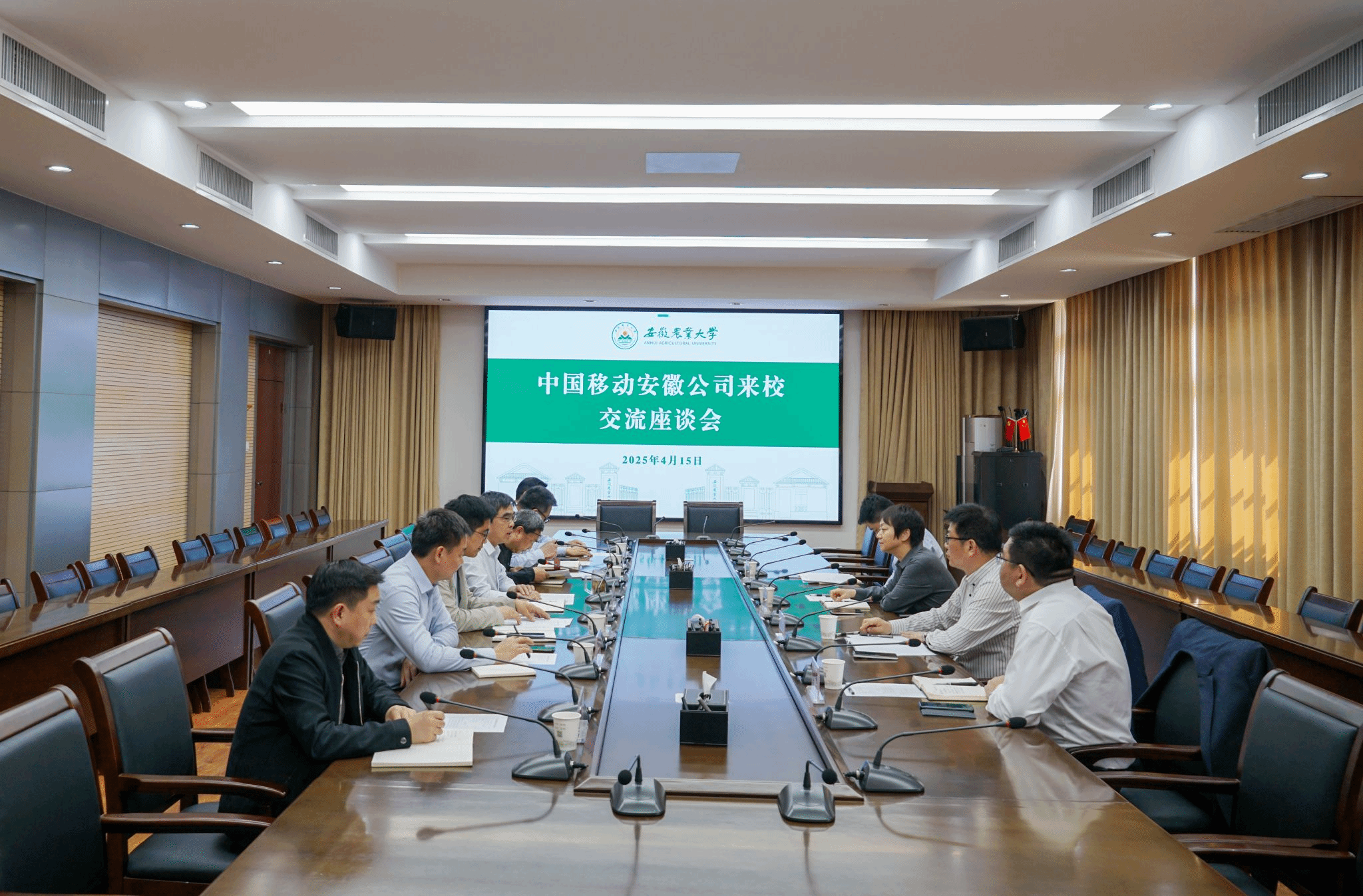 本网讯 4月15日下午,中国移动安徽公司副总经理王晓慧一行来校调研交流。校党委常委、副校长蔡德军出席座谈会。