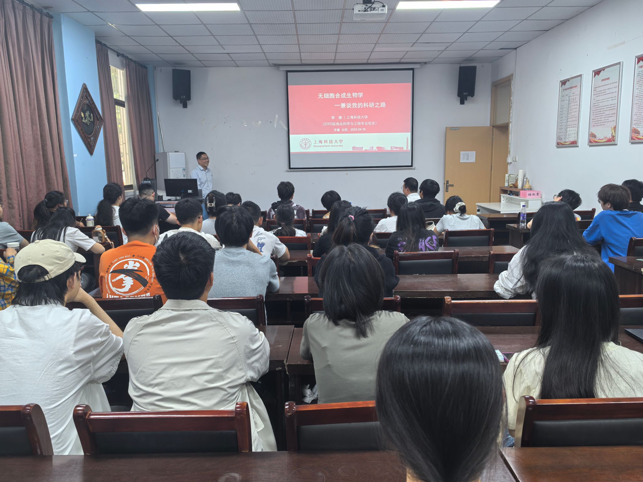 李健以《无细胞合成生物学—兼谈我的科研之路》为主题,回顾了个人从本科到博士阶段的学术探索历程,分享了在科研道路上克服挑战的心得体会。他指出,扎实的专业基础、开放的学术视野和持之以恒的探索精神是科研工作的重要支撑。他寄语学弟学妹们:珍惜在校时光,积极参与科研实践,培养创新思维,提前规划学术路径。