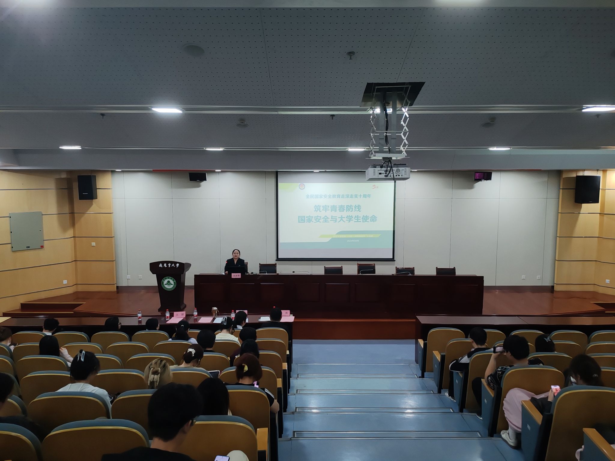 李晓琦结合近年来大学生群体中频发的AI换脸诈骗、冒充公检法人员诈骗、借找工作和恋爱诈骗等真实案例,作《反电诈及其他常见犯罪普法教育》专题报告,她深入剖析了诈骗分子的作案手段和常见套路,并给出了“八问防诈骗”的策略。汪永艳作为2004级法学专业校友,再次回到母校作《筑牢青春防线 国家安全与大学生使命》专题报告,她深入浅出地讲解了国家安全的内涵和重要性,结合实际案例,剖析危害国家安全的各类罪名,强调了大学生守护国家安全的责任和义务。