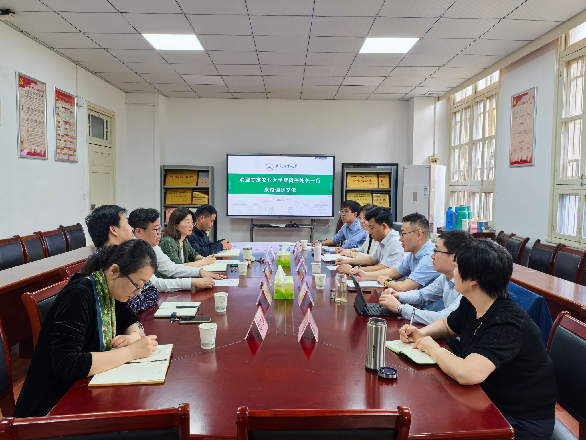 本网讯 4月17日上午,甘肃农业大学教务处一行六人来我校,就本科教育教学、人才培养方案修订等问题开展调研交流。我校党委常委、副校长江海洋主持会议。教务处相关负责同志及相关学院教学副院长参加会议。