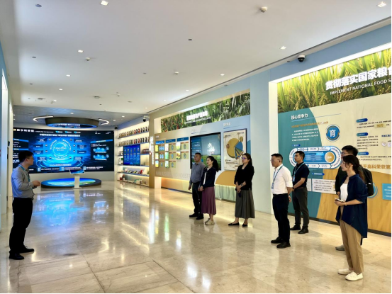 任琪一行在隆平高科人力资源部总经理王玲伟的陪同下参观了智慧农业平台等,详细了解了公司发展历程,深入了解企业在水稻育种、生物技术、数字农业等领域的前沿成果及智慧农业应用场景,随后双方围绕产教学研等展开交流。
