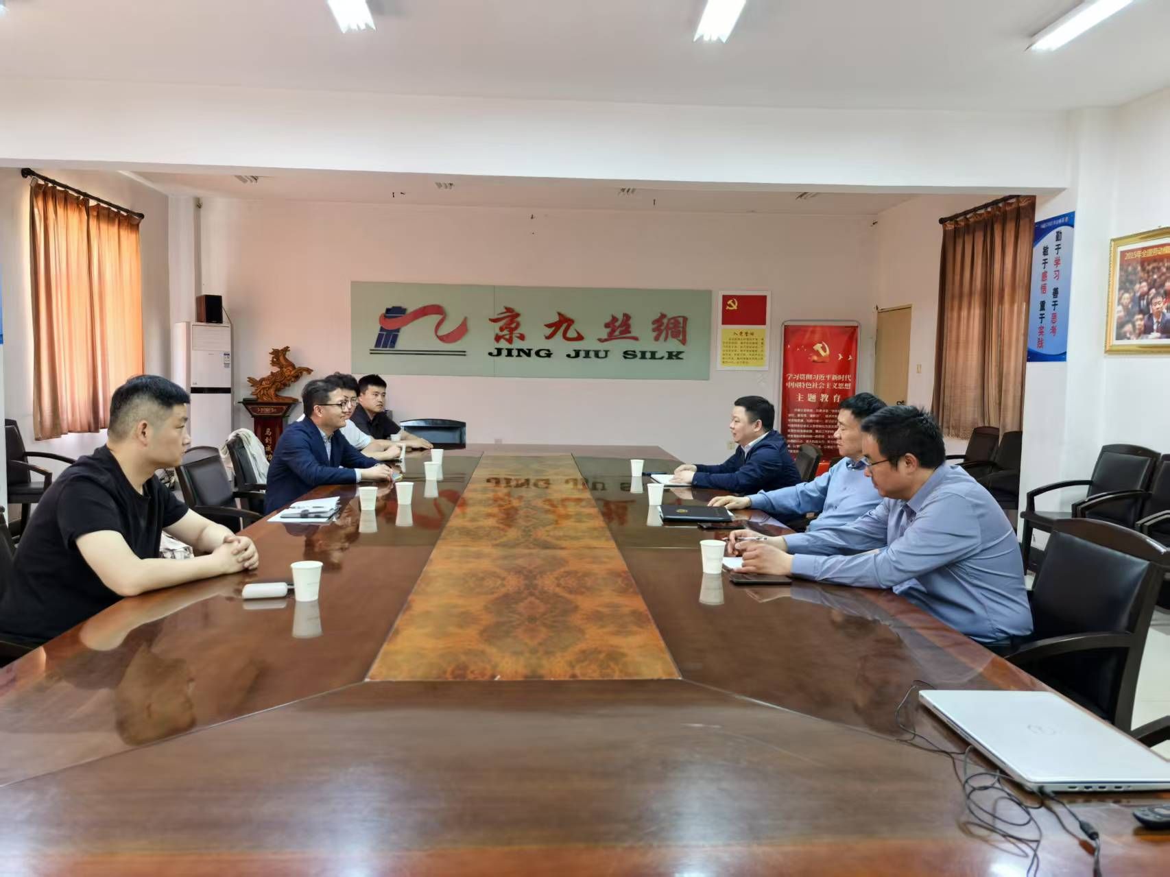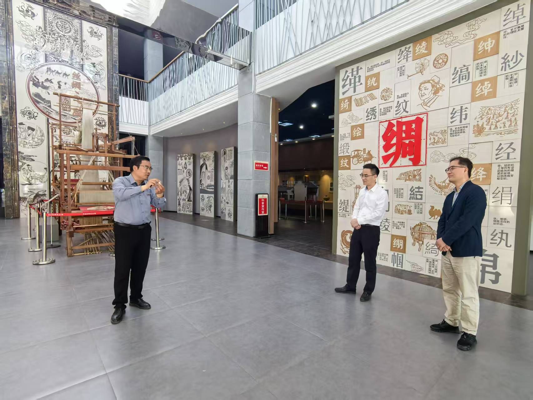 在安徽京九丝绸股份公司,周涛一行参观了生产车间、产品展示区和华夏丝绸博物馆,深入了解企业的生产流程和经营模式。公司董事长马品德介绍了企业在科技创新、市场拓展等方面取得的成绩,并对学校为企业输送优秀人才表示感谢。2006届蚕桑专业校友、总经理周炎分享了在企业中从基层岗位逐步成长的经验,对学院人才培养与企业需求的契合度提出了建设性意见。