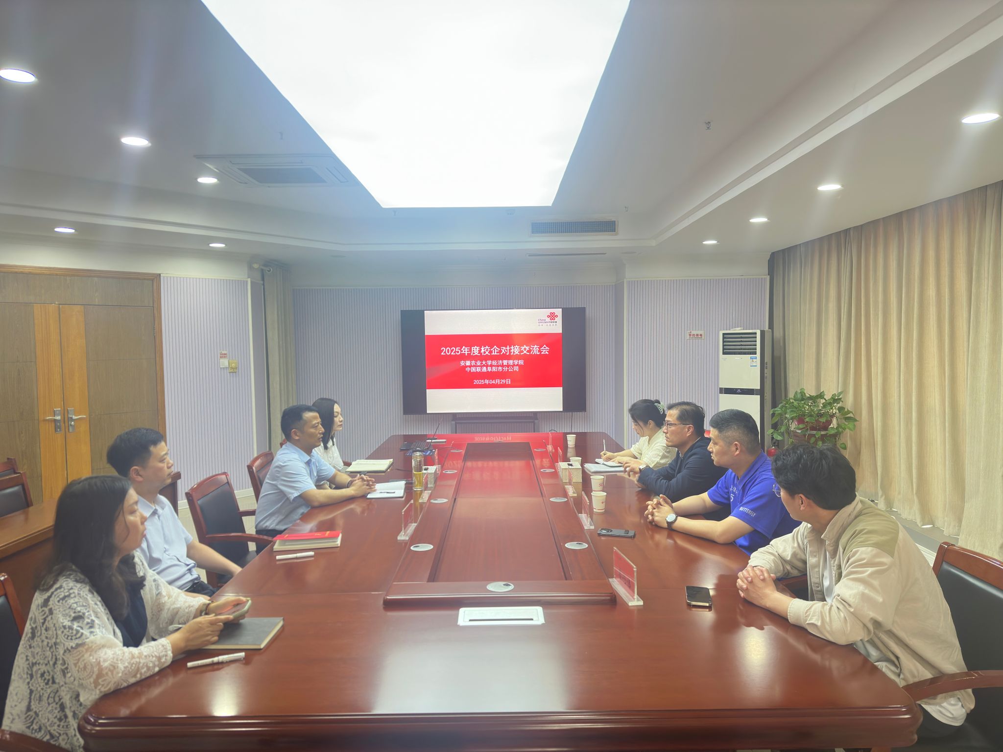 本网讯 4月29-30日,经济管理学院党委副书记、纪委书记周涛带队前往阜阳,到阜阳联通、颍东农商行、安徽京九丝绸股份公司等单位开展企业走访,与企业负责人座谈了解企业岗位需求趋势及人才培养建议,并看望了在此工作的校友们。