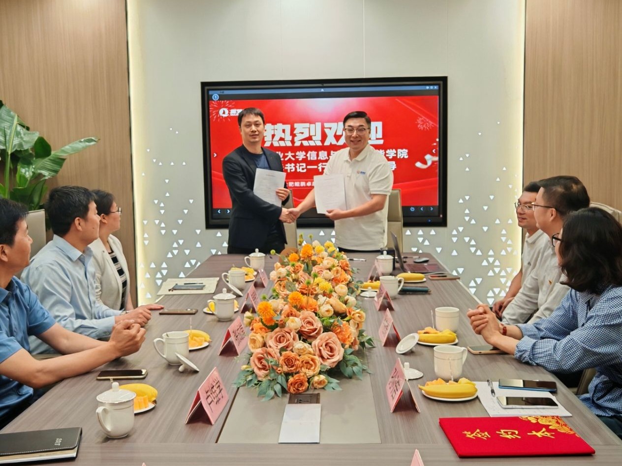 在合肥鲲鹏卓越信息科技有限公司,公司总经理蒋明睿重点介绍了企业的发展情况和未来规划,他希望能够将企业项目与学院人才培养结合起来,为学生提供广阔的创业就业平台。吴辰华表示,公司的相关项目与学院专业高度契合,合作潜力巨大,希望能够进一步加强合作,探索实习-就业-创业全链条模式。双方签订了合作意向协议。