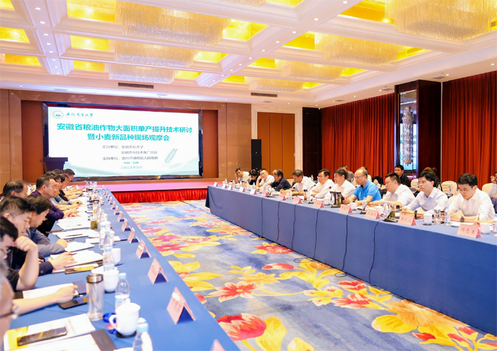 本网讯 5月10-11日,我校与安徽省农业技术推广总站联合在宿州市埇桥区举办安徽省粮油作物大面积单产提升技术研讨暨小麦新品种现场观摩会。
