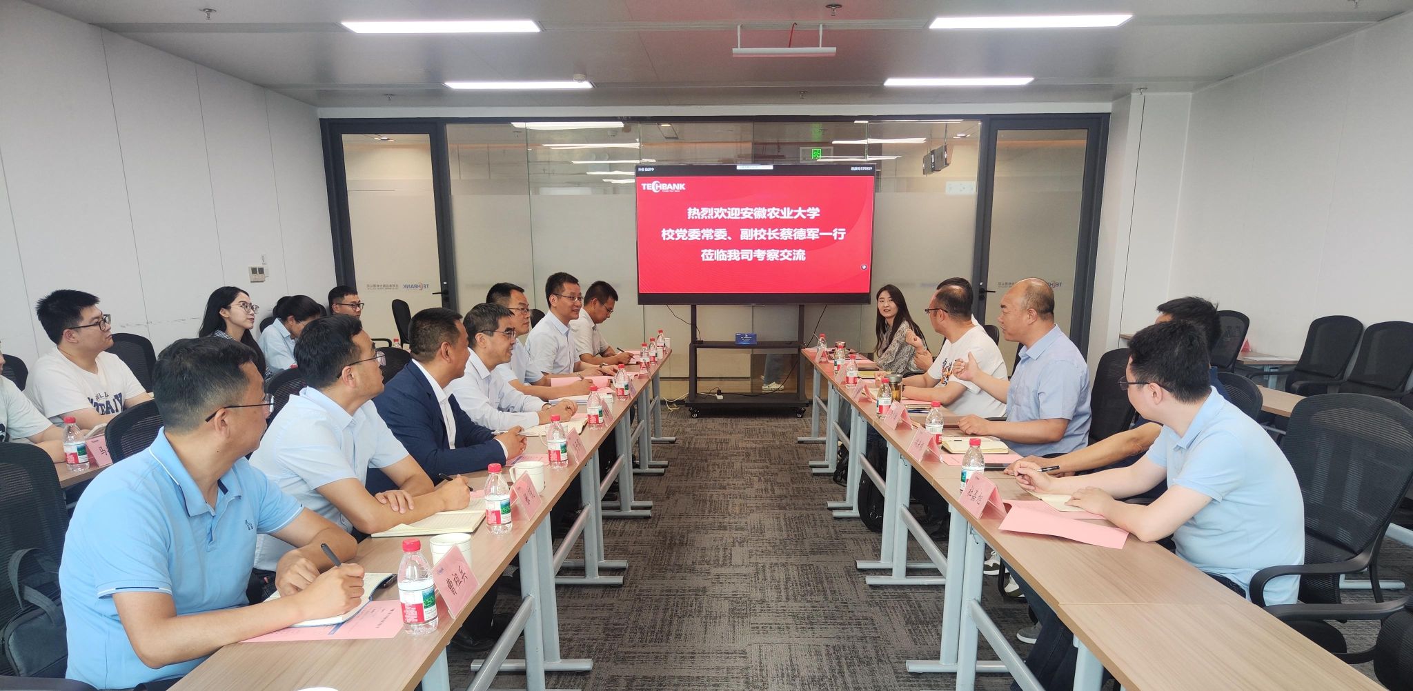 本网讯 5月13日下午,校党委常委、副校长蔡德军率队赴天邦食品股份有限公司、史记生物技术有限公司及安徽华澳生物技术有限公司开展“访企拓岗促就业”专项行动。天邦嗨客集团执行董事、总裁、2004届动物科学专业校友李少海,安徽华澳生物技术有限公司董事长、1989届食品卫生检疫专业校友李生龙、动物科技学院、动物医学院负责同志和7名求职研究生共同参与,通过实地走访、座谈交流、简历投递等环节,扎实推进校企合作与就业工作。