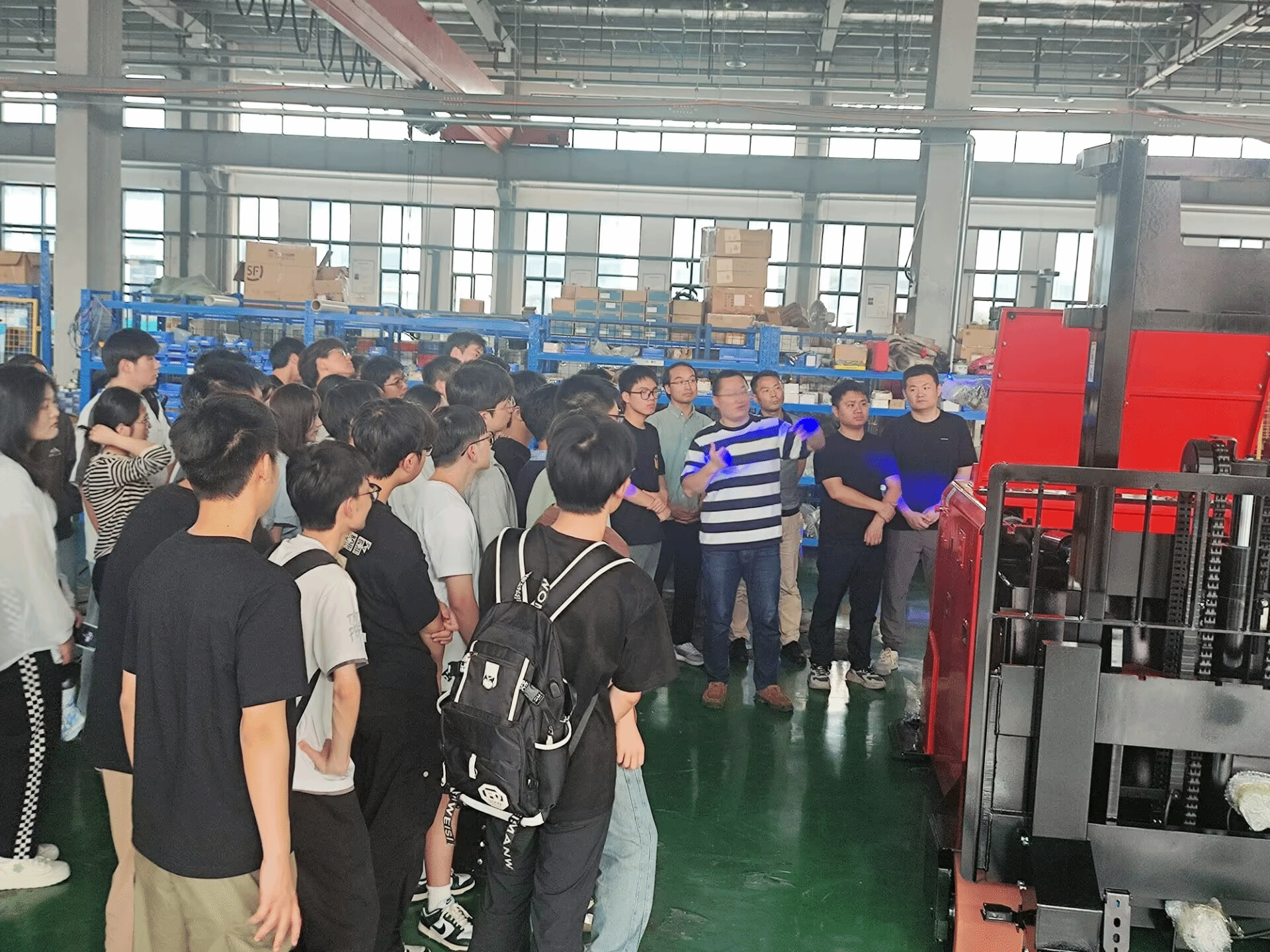 王权带领学院师生先后参观了研究院发展历史、智能机器人研发中心、成果展示厅及智能制造生产线。研究院技术人员详细介绍了工业机械臂、特种机器人、服务机器人、工业机器人等核心产品,同学们近距离体验了科技创新的实际场景,对机器人技术在各行业的落地应用有了更直观的认识。