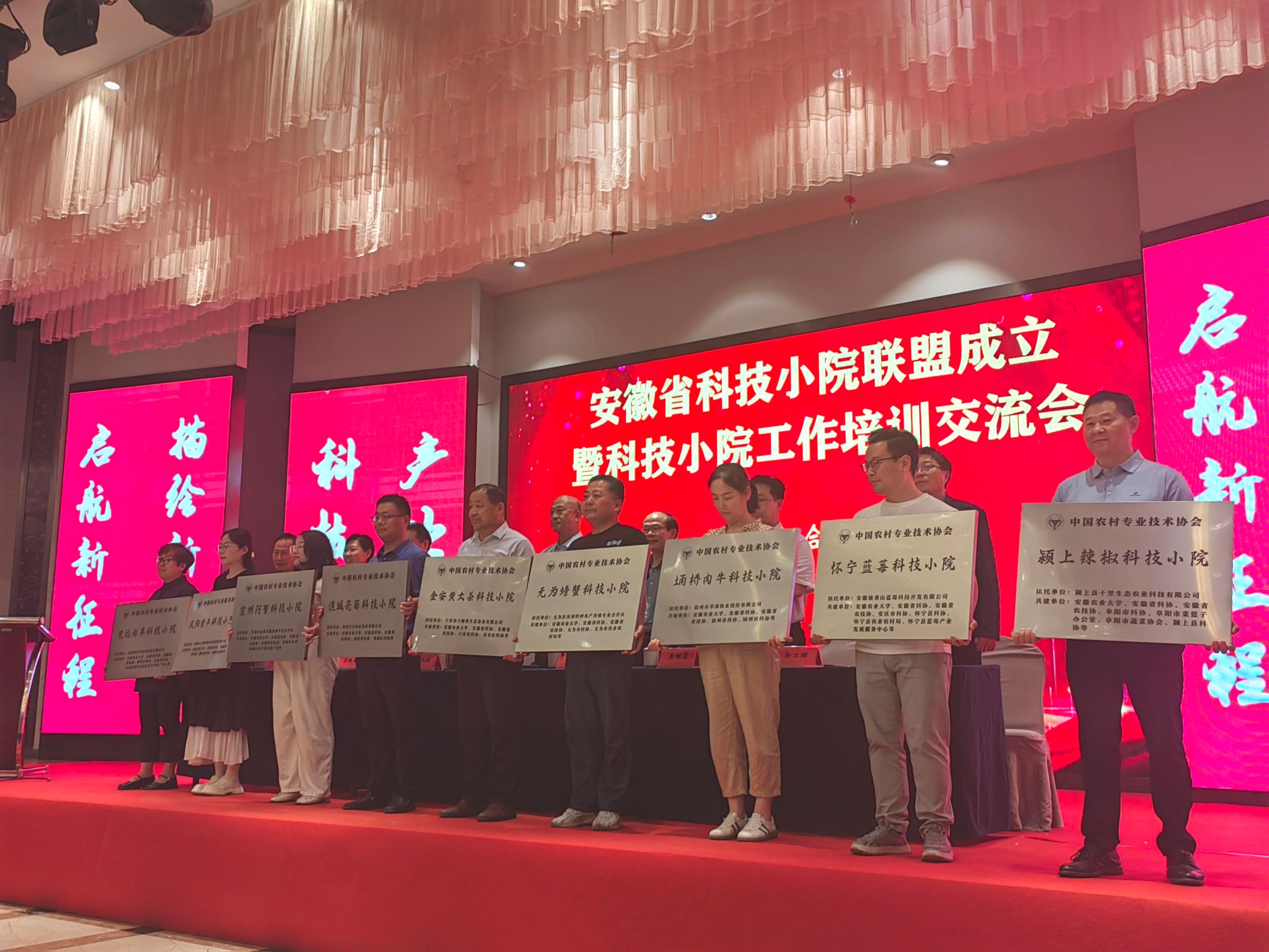 本网讯 5月16日,安徽省科技小院联盟成立暨科技小院工作培训交流会在肥西召开,会上对安徽省此次获批的中国农村专业技术协会科技小院进行了授牌。安徽省共获批18个科技小院,其中13个科技小院为我校牵头建设。