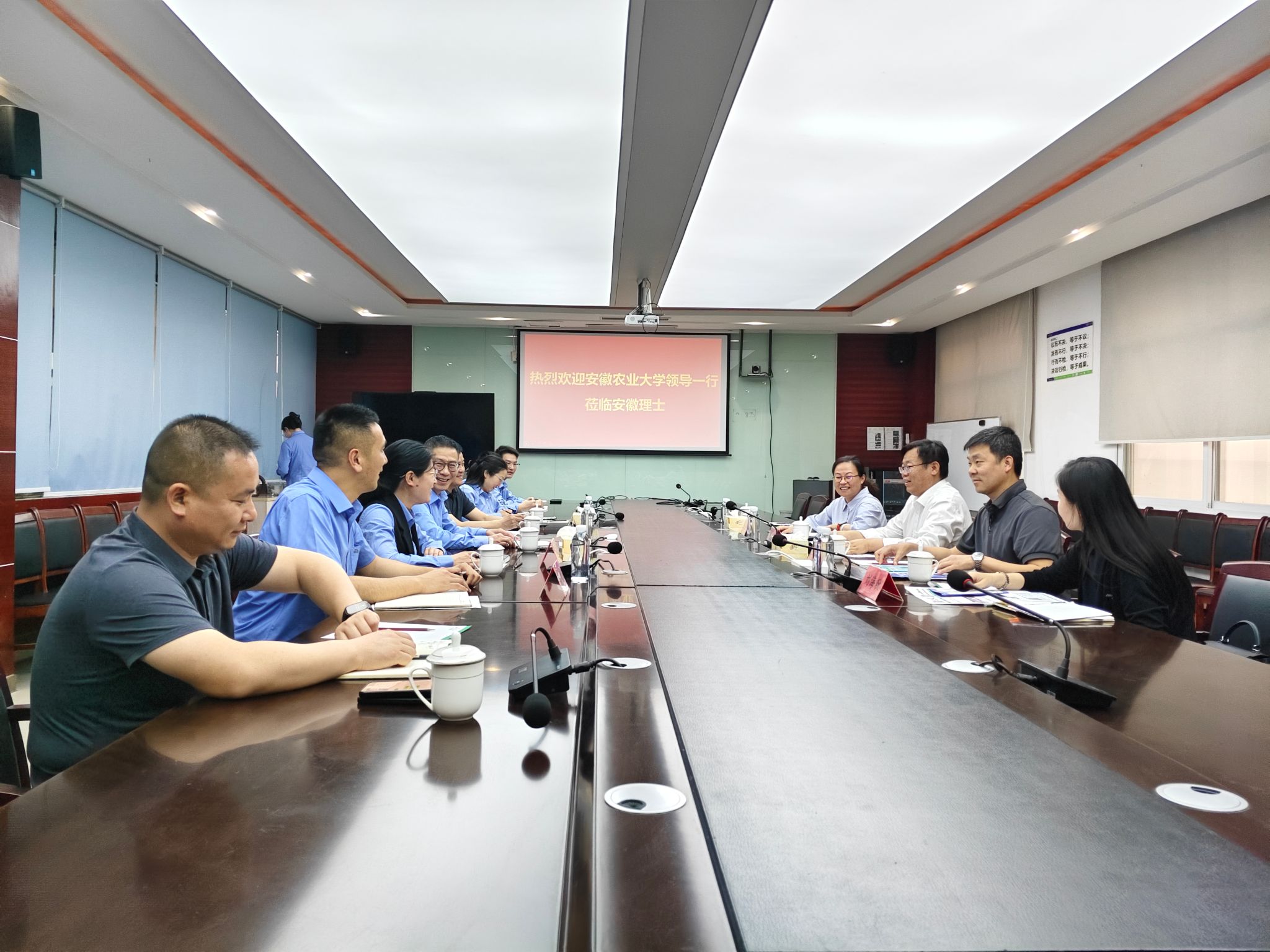 在安徽理士电源技术有限公司,公司董事长张继鸿对江海洋一行到访表示热烈欢迎,对学校多年来为企业输送优秀毕业生表示感谢,并就企业概况、发展战略、人才需求、合作意向等方面作了详细介绍。会上江海洋还给3位安徽农大在企校友代表赠送纪念品并听取他们在企业的发展情况。