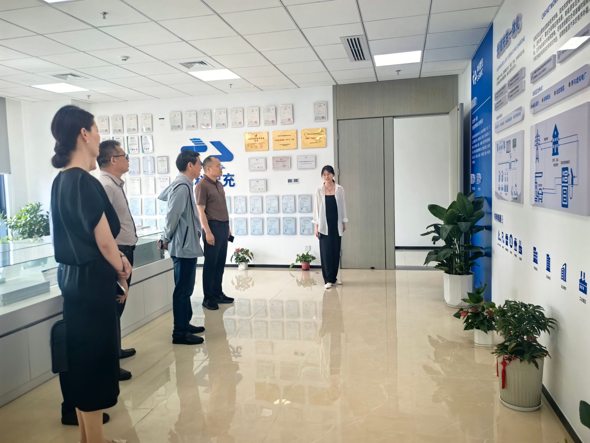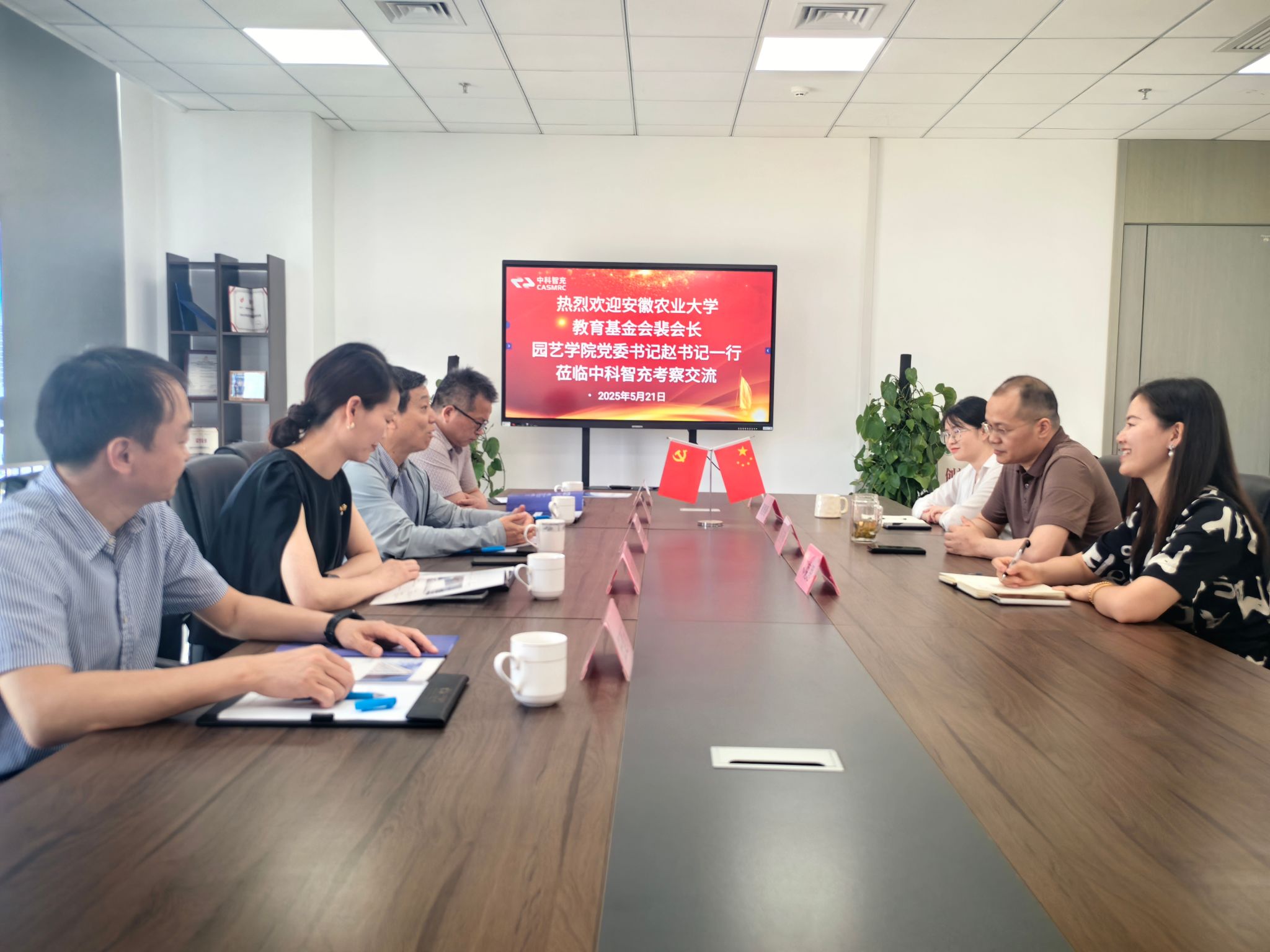 本网讯 为深化校企合作、凝聚校友力量,5月21日下午,校教育基金会理事长裴树东带队走访校友企业中科智充新能源科技有限公司并开展访企拓岗,03届园艺专业吴正利总经理主持召开座谈会,校总务处处长胡启涛、保卫处处长任建东、学院党委书记赵冠艳陪同参加。
