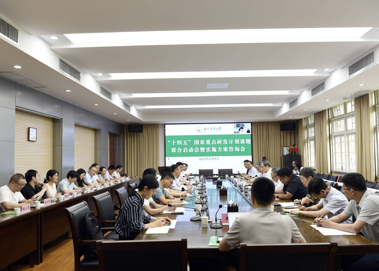 本网讯 6月9日,学校在第三会议室召开“十四五”国家重点研发计划项目课题联合启动暨实施方案咨询会。中国工程院院士蒋剑春、吴义强、杜官本,校党委副书记、校长操海群出席会议。中国林科院原院长储富祥、中国林科院林产化学工业研究所副所长徐俊明,以及来自中科院广州能源所、北京化工大学、南京林业大学、江南大学、福建农林大学、常州大学等专家学者,国家重点研发计划课题项目组成员,校科技处、材料与化学学院主要负责同志参加会议。