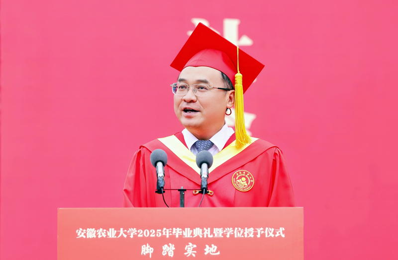 家长代表郑学伦表达了对学校的敬意和感谢,他表示,在安徽农业大学,学生们汲取了知识的甘泉、锤炼了坚韧的意志、懂得了责任的分量、收获了真挚的情谊,寄语同学们始终以热忱之心追逐梦想,以豁达之态面对挑战,以感恩之情回馈社会。