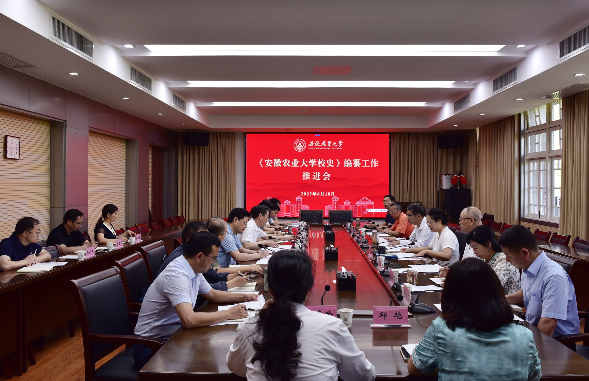 会议指出,《安徽农业大学校史》编纂要以时间为经,以事件为纬,以档案史料为核心依据,既要总结前人经验,又要创新叙事逻辑,确保史实准确、表述规范、亮点突出,全面、客观、系统地呈现学校百年发展历程。