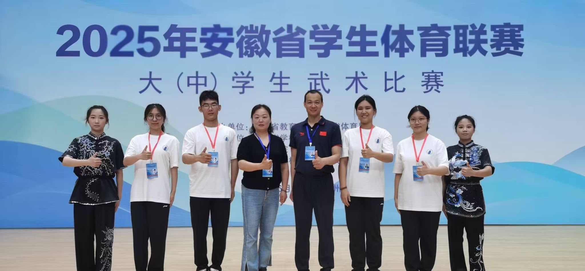 本网讯 6月23日,2025年安徽省学生体育联赛大学生武术比赛在宿州学院圆满收官。全省44所高校的近400名师生同场竞技,我校学子获1金1铜的好成绩。