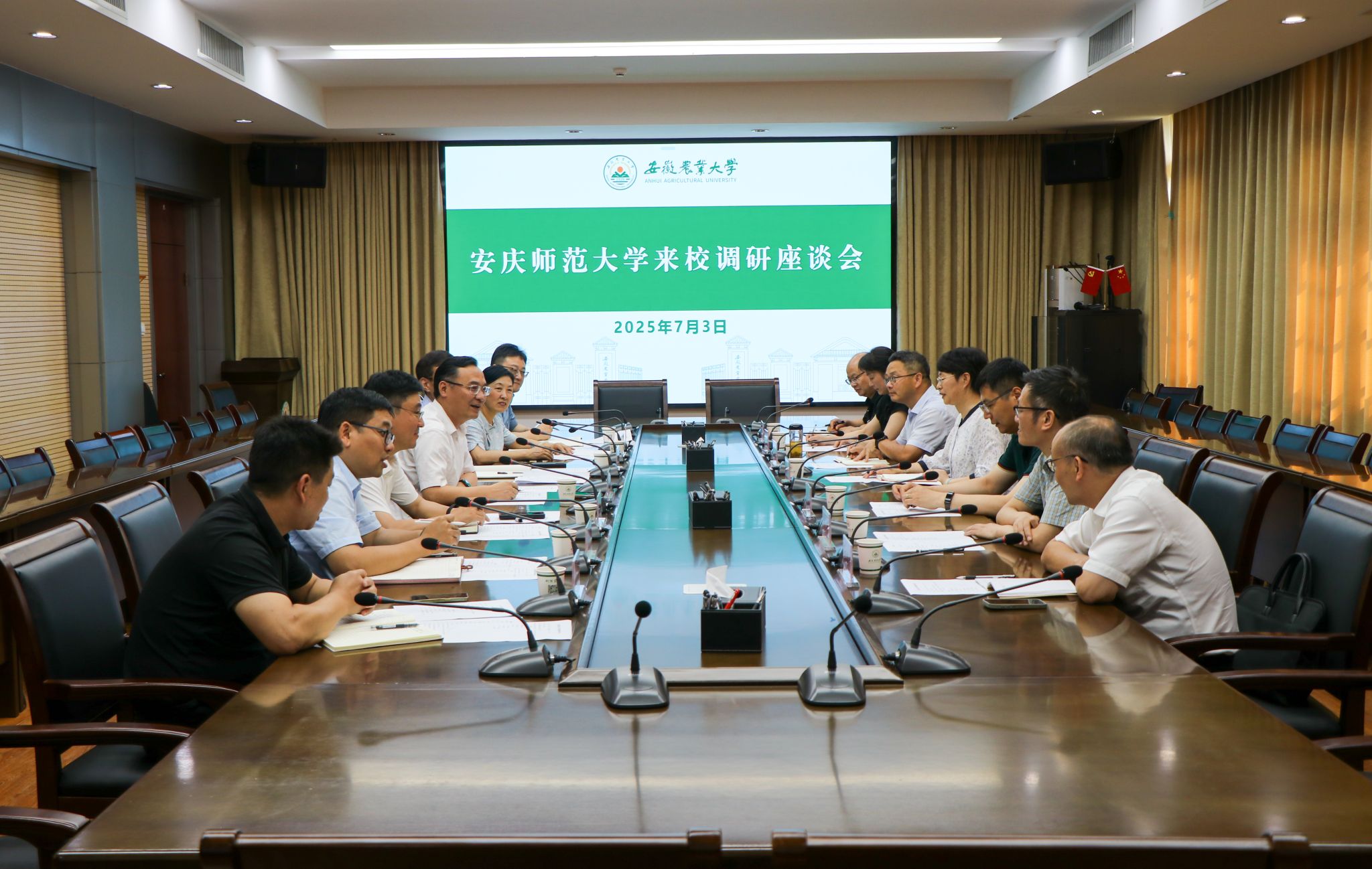 本网讯 7月3日下午,安庆师范大学校长彭凤莲、学术副校长程和发一行来校调研。校党委副书记、校长操海群出席座谈会。