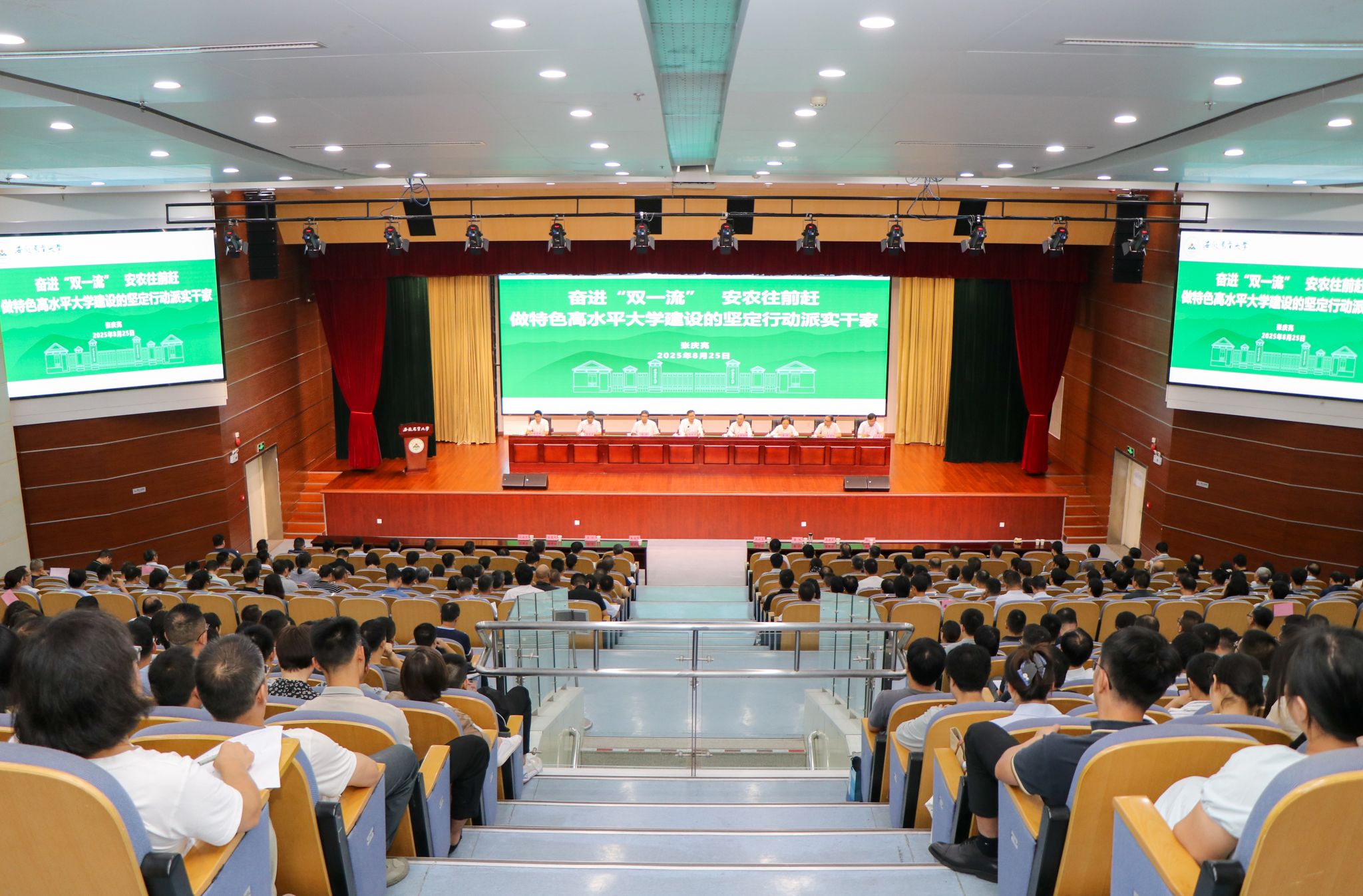 操海群在部署年度重点工作以及开学工作时强调,今年是收官“十四五”、谋划“十五五”的关键之年,高质量完成年度工作任务意义重大。他强调,要旗帜鲜明抓党的建设。提高政治站位,深入学习贯彻习近平总书记关于教育、“三农”工作重要论述和考察安徽重要讲话精神,以服务江淮粮仓建设和乡村振兴战略的实际行动坚定拥护“两个确立”、坚决做到“两个维护”;要登高望远抓谋划规划。站在农业强国强省建设的大局,扛起江淮粮仓建设政治任务,聚焦学校第八次党代会确定的奋斗目标,科学谋划学校“十五五”;要攻坚克难抓内涵建设。持续推进本科教育教学审核评估整改工作,构建拔尖创新人才自主培养体系,强化招生、培养、就业联动,完善研究生分类培养、联合培养机制,切实提高人才培养质量;统筹“双一流”创建和江淮粮仓建设两件大事,一体推进学科、人才、平台建设,统筹推进学科评估、重点实验室验收等工作,打造学校与一带一路沿线国家尤其是中亚国家农业教育科技合作的桥头堡。做大国家基金、成果转化基金、教育发展基金,提升核心竞争力;要千方百计抓条件建设。推进新校区谋划和蜀山校区提升,高标准建设繁昌创新港,不断优化九华山路校区软硬件设施,让师生学习安心、工作舒心,以崭新面貌迎接建校百年;要毫不松懈抓安全稳定。解决师生急难愁盼,抓实抓细学生日常管理、心理健康教育、资助、征兵、就业等工作,精准助力学生健康成长。筑牢意识形态安全防线,加强网络舆情分析研判,提升舆情防范应对能力。要切实做好新生报到和老生返校各项准备工作,确保组织到位、保障到位、服务到位、安全管理到位。