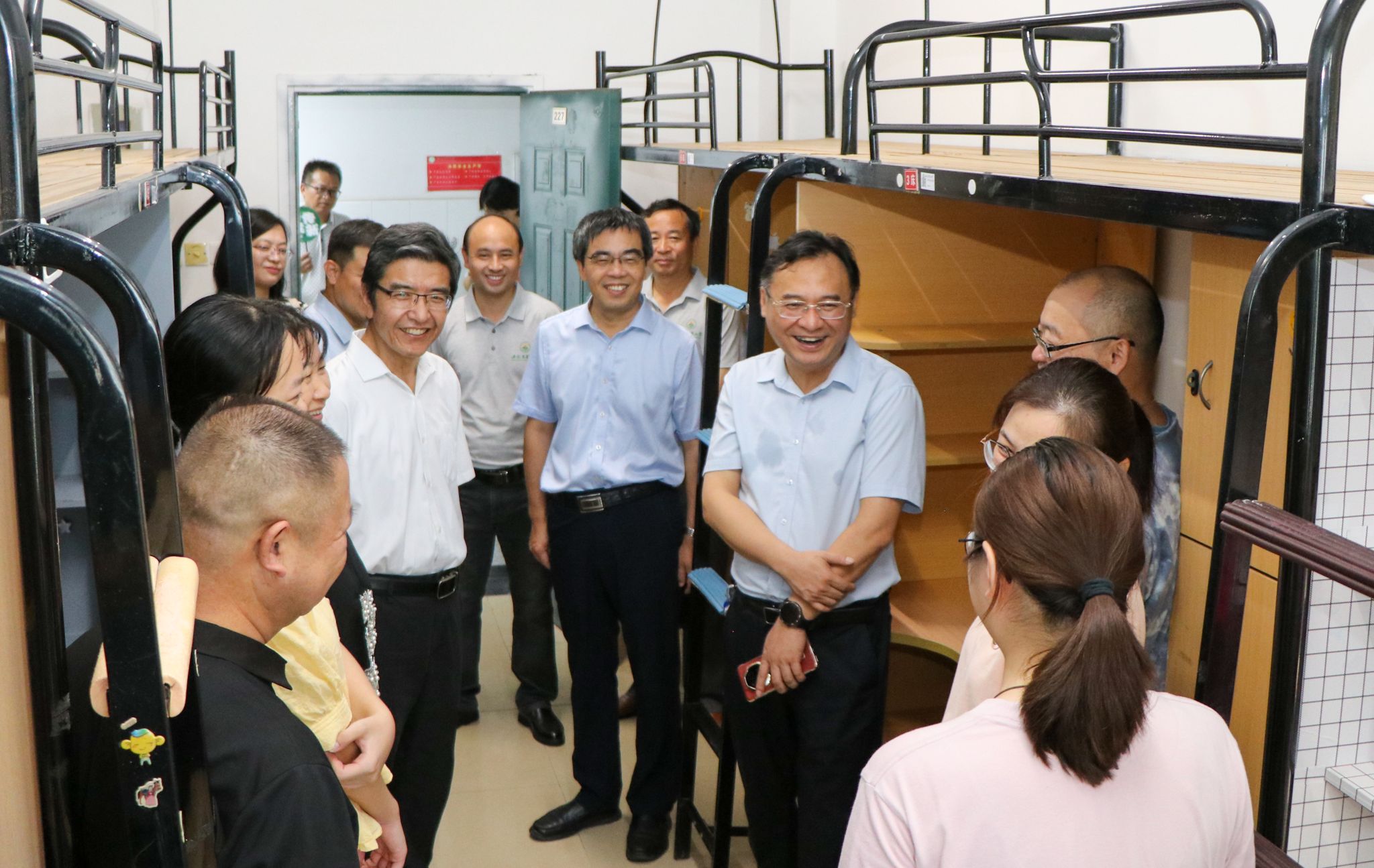 校领导张庆亮、操海群、董雨、蔡德军、陈黎卿、江海洋在相关部门负责同志陪同下,深入迎新现场、宿舍、食堂等,同新生及家长亲切交流,仔细查看新生报到的各环节工作,慰问工作人员及学生志愿者。