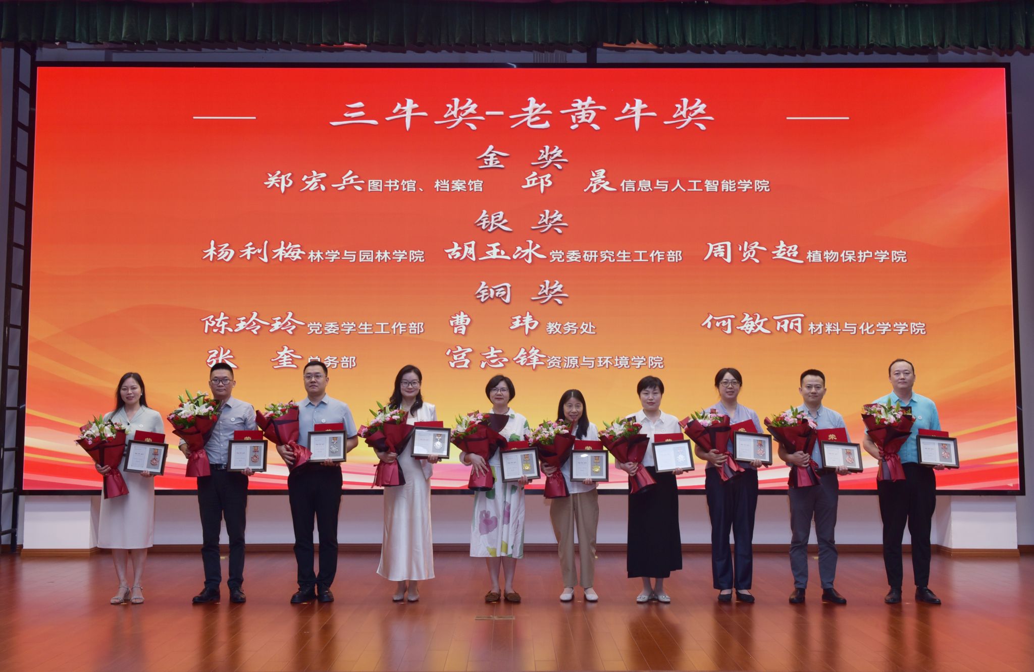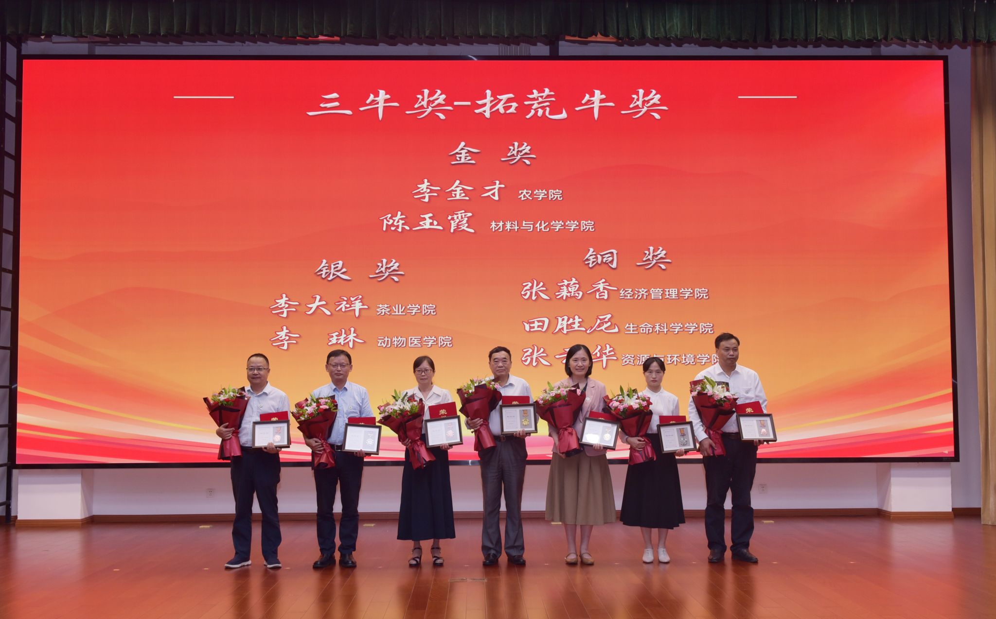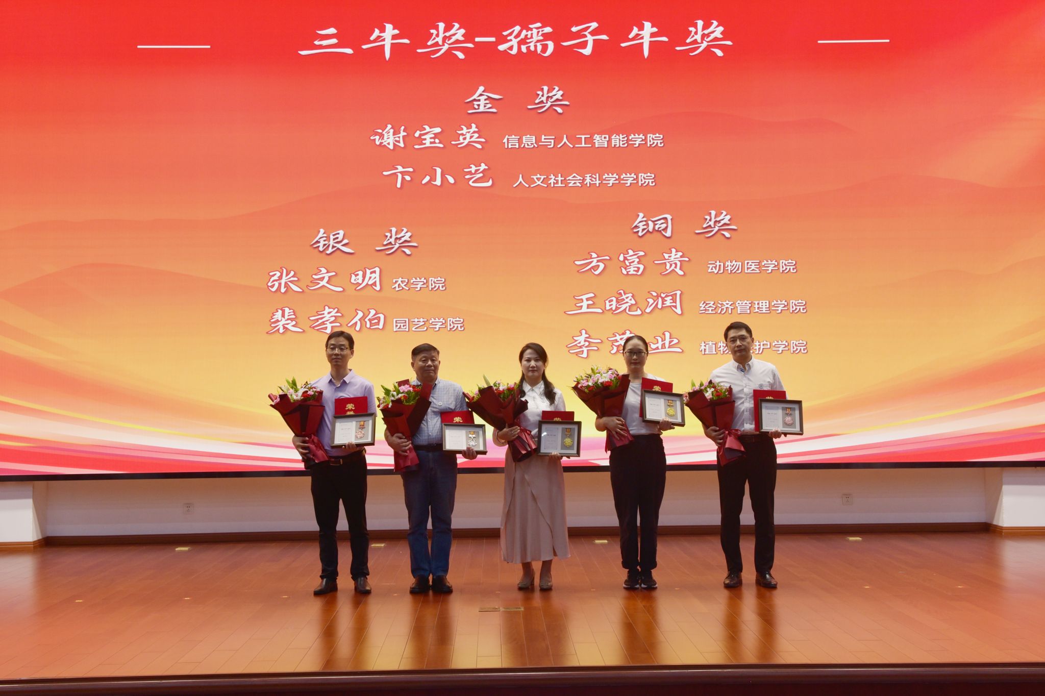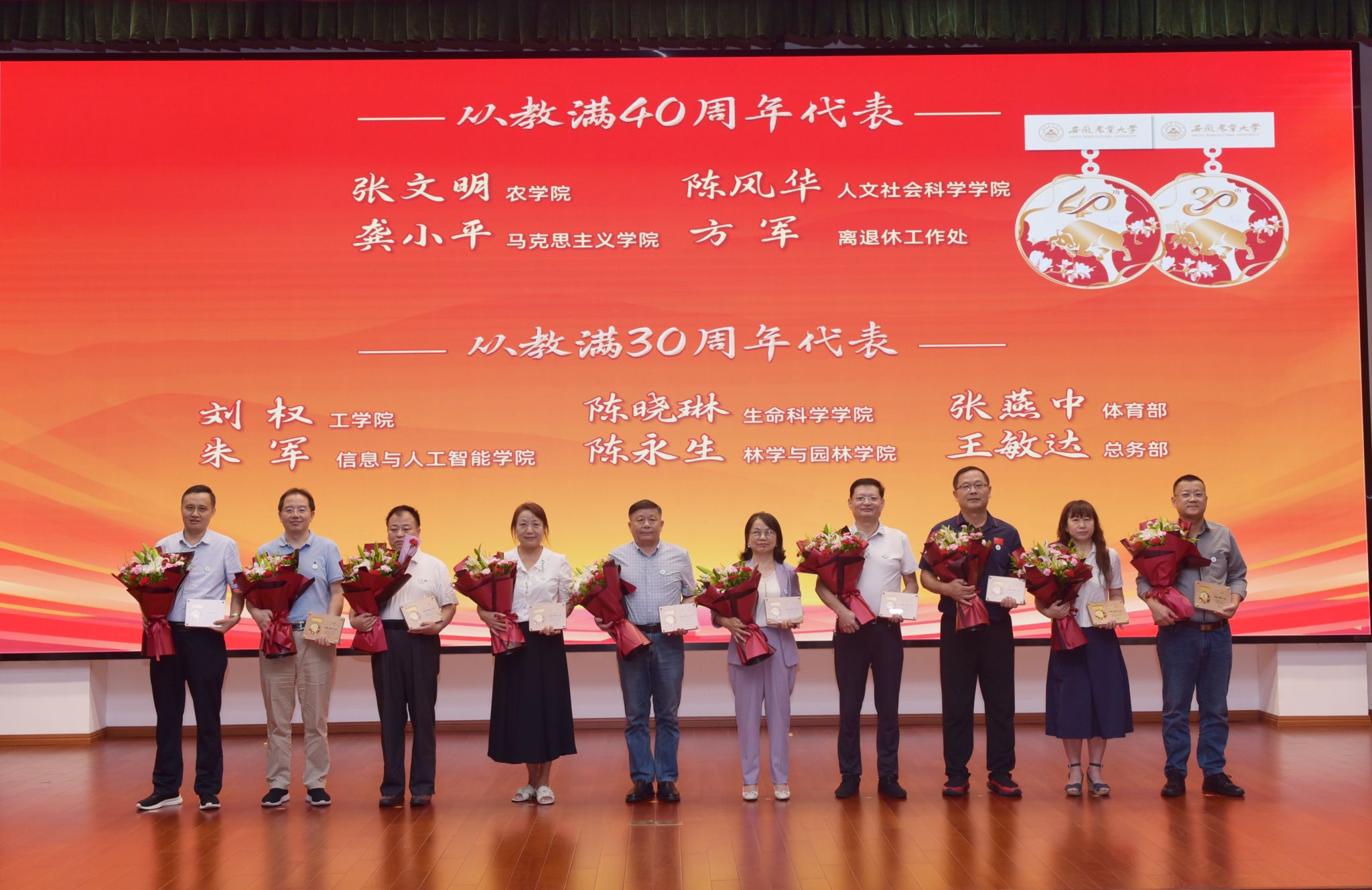 大会现场发布2025年安徽农业大学教师节暨“三牛奖”主题宣传片《师光·心语》。对从教满40周年代表、从教满30周年代表、第四批“全国高校黄大年式教师团队”创建示范智能农机装备教师团队、2025年度全省教书育人楷模、学校“三牛奖”获奖人选等长期致力于教学、科研、管理一线,积极践行教育家精神、发扬“三牛”精神的先进教师和集体代表进行表彰。