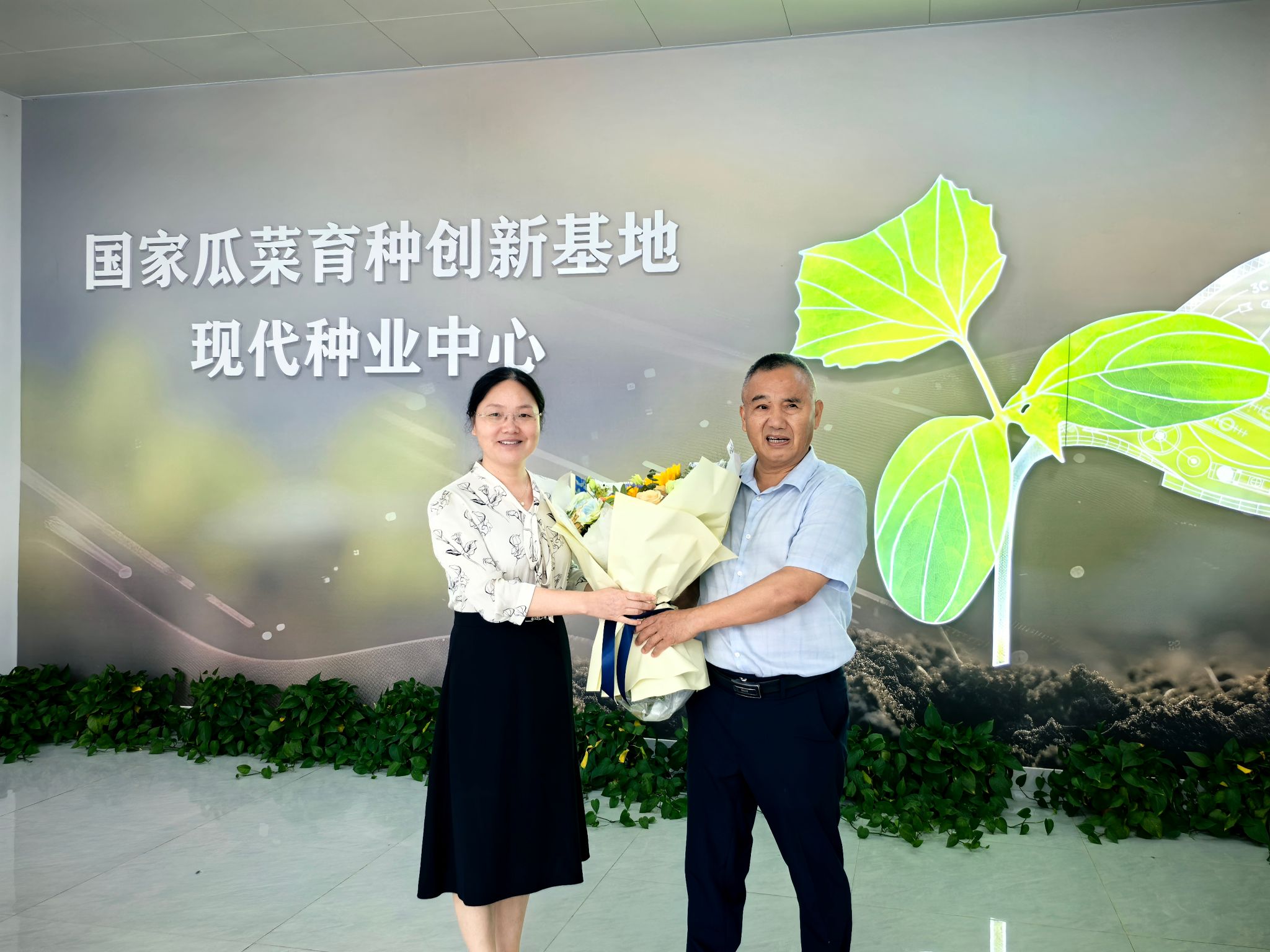 本网讯 9月9日上午,园艺学院赴安徽江淮园艺种业股份有限公司开展校企合作对接交流,并慰问学校讲席教授、江淮园艺董事长戴祖云,送去教师节祝福。校发展规划处处长王瑞,学院党政领导吴俊、程玉峰、叶辉、袁凌云、刘普及蔬菜科学系部分教师代表,戴祖云及江淮园艺相关部门负责人参加对接交流。