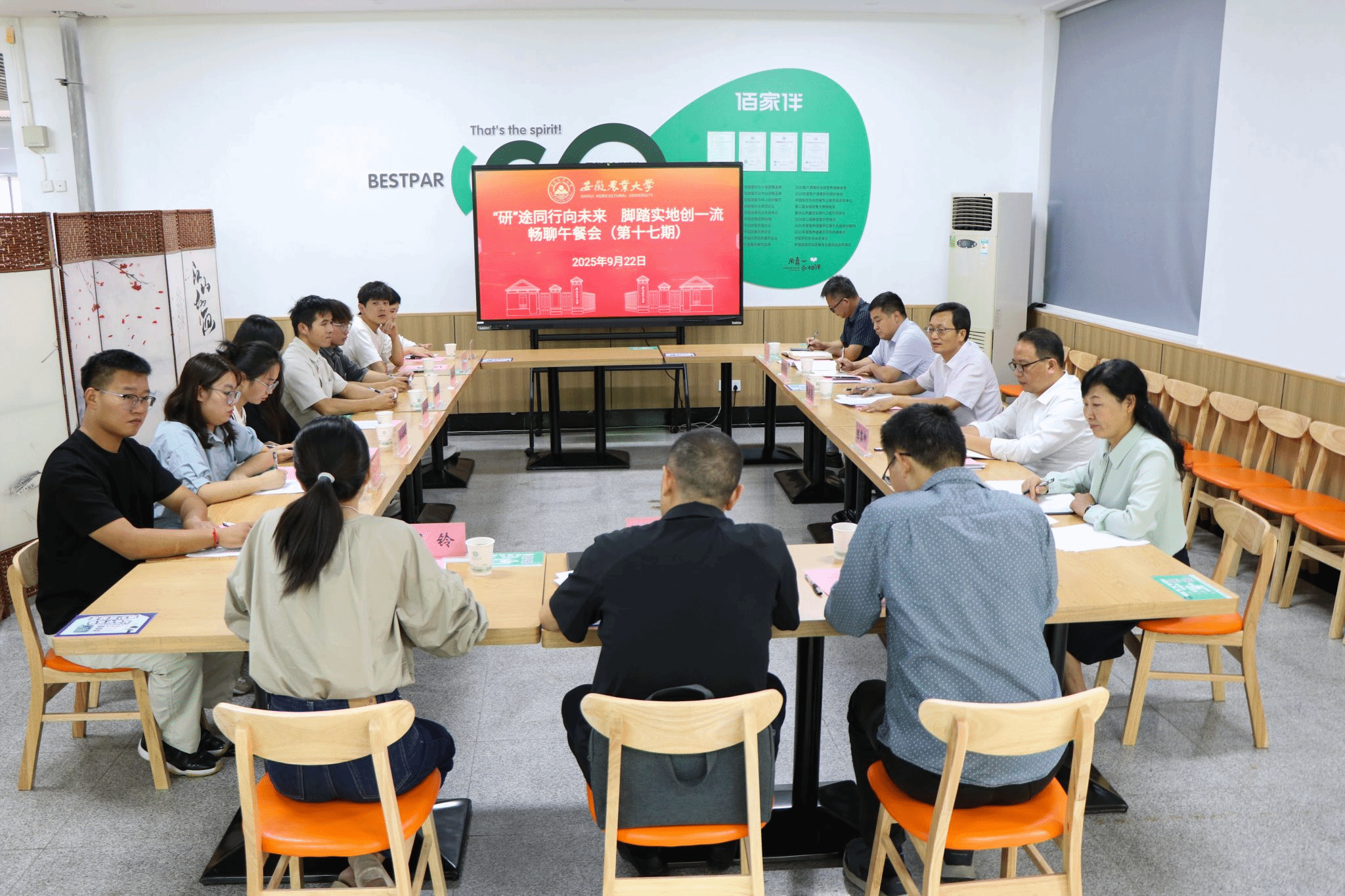 在认真倾听每一位代表的发言后,张庆亮对学子们善于思考、精于表达的态度给予肯定。他指出,研究生阶段是学术能力提升与个人成长的关键时期,遇到问题并主动寻求解决路径是科研素养与责任意识的体现。他强调,作为新时代研究生,要学会批判性思维,着力培养分析问题与解决问题的能力,在辩证思考中拓宽学术视野,聚焦行业发展痛点、社会民生需求,让研究成果既有理论深度,又有应用价值。他希望,同学们平衡好生活、学习与运动的关系,兼顾身心全面发展,努力成为“生活好、学习好、运动好”的“三好学生”,在“研”途上走得更稳、更远,为学校创建一流学科、为国家科技创新贡献更多青春力量。