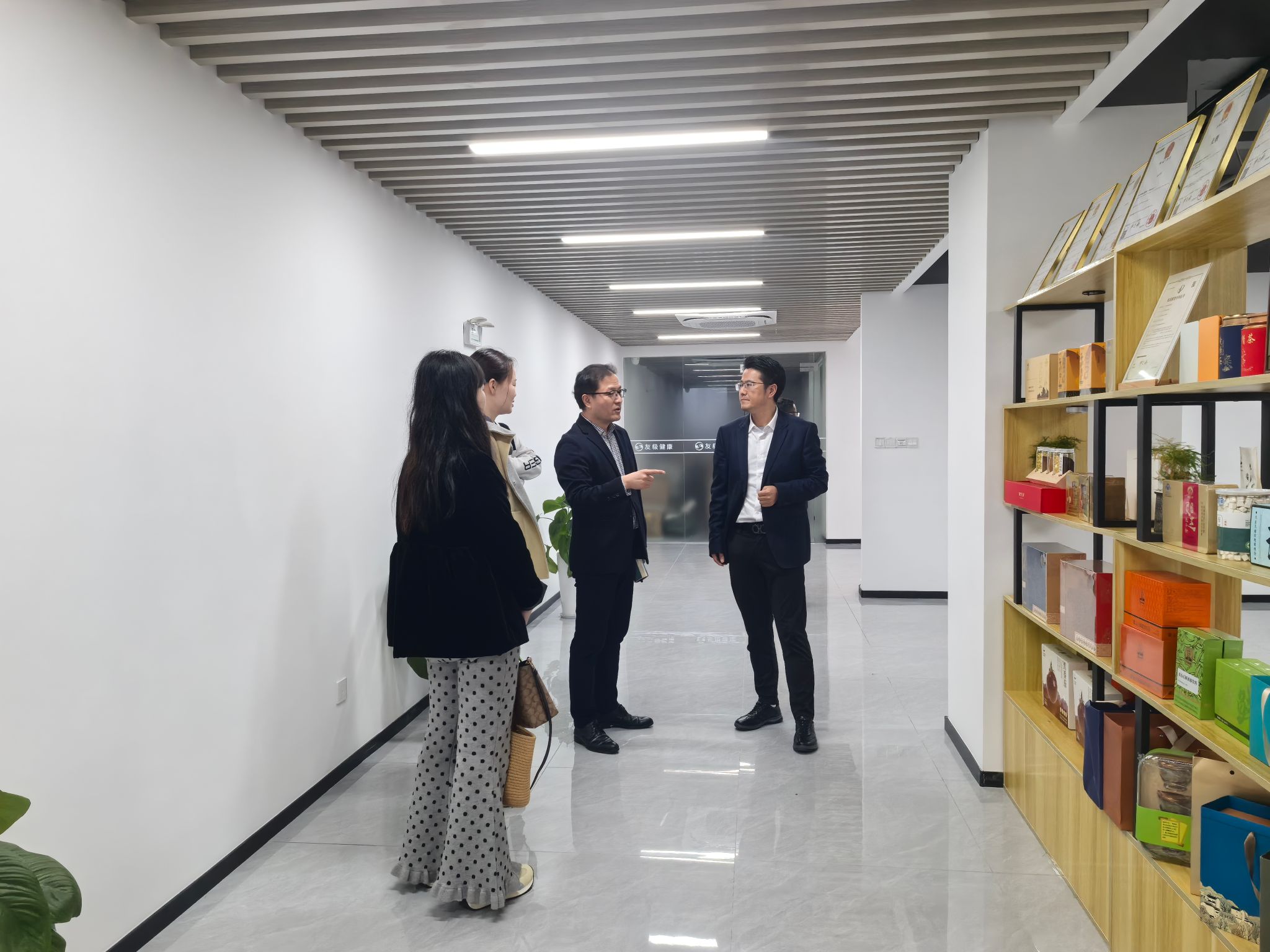 在合肥友极健康科技有限公司,企业负责人方萍及我校2012届食品科学与工程专业校友郭近生与学院一行就人才培养、实习就业、产学研合作等方面展开了深入交流。