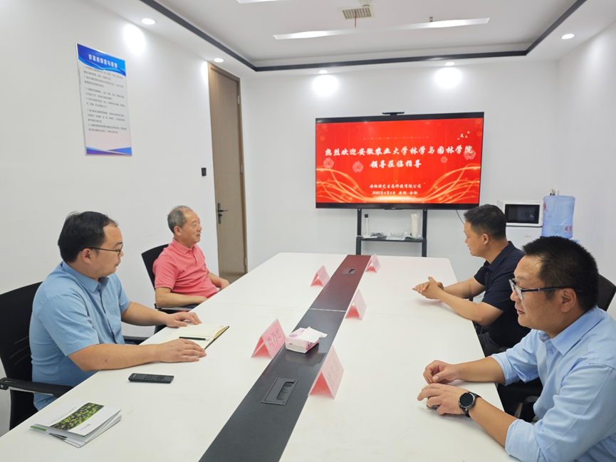 在安徽绿艺生态科技公司,学院校友、公司总经理肖乃忠详细介绍了公司的发展历程和在智慧林业领域的创新实践,表达了对林学、生态学、智能装备等专业人才的迫切需求。张龙娃对公司的热情接待表示感谢,他强调,学院始终坚持“产教融合、协同育人”理念,希望围绕企业“订单式”培养、联合开展科研创新与课题攻关、优先组织毕业生招聘对接等与企业建立常态化合作机制,促进双方资源共享、优势互补、人才共育,为区域经济社会高质量发展提供更坚实的智力支撑与人才保障。